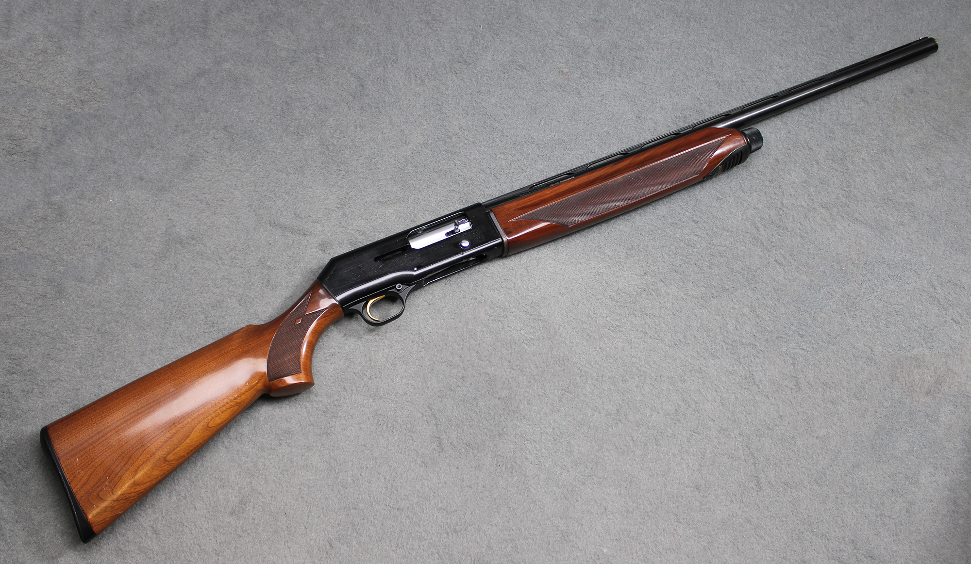 Beretta AL 390 Silver Mallard semiautomatic shotgun chambered in 12 Gauge. Introduced in the early 1990s as a successor to the A303. The "Silver Mallard" was designed as a lightweight, aluminum-capped model designed for field use, particularly for waterfowl hunting. Comes with a single installed Modified choke and no other accessories.