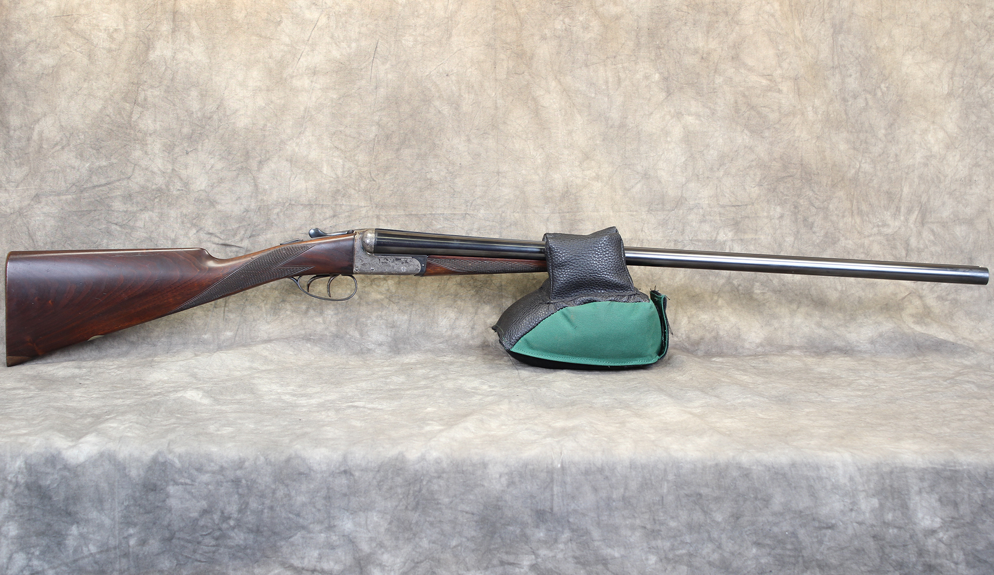 This classic British double features a traditional boxlock action, double triggers, and a walnut stock with checkering. The metal shows moderate handling wear consistent with normal use, while the bores are in good condition and the action locks up properly. A well-made and reliable shotgun from a respected English maker.