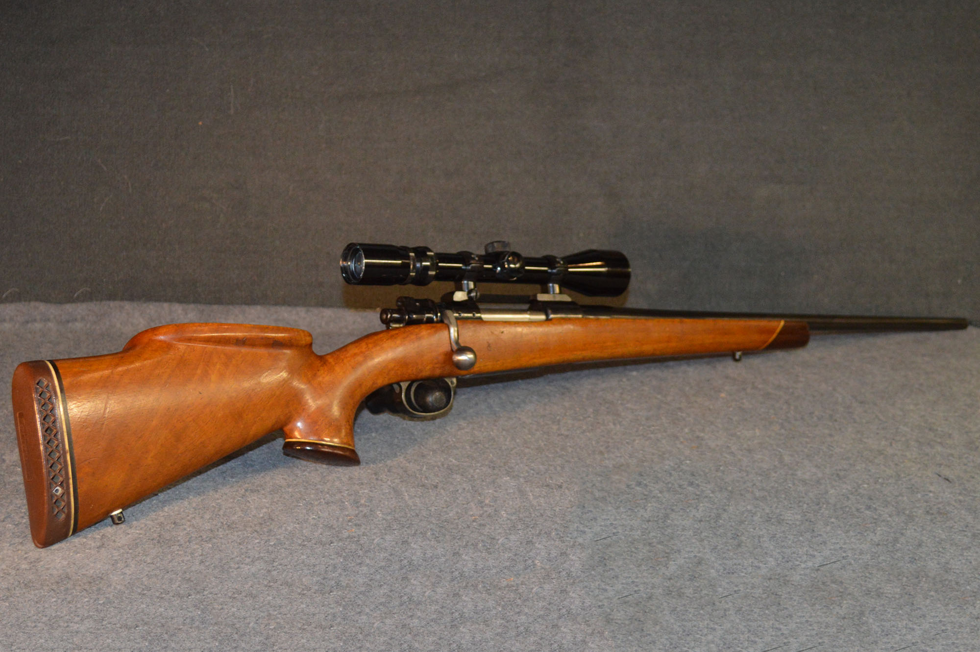 This Flaigs "Ace" in .244 Remington is a unique piece of firearm history. Flaigs out of Millvale, PA built many sporterized Mausers back in the day. As I understand it, the ACE stamp on the barrel denotes it was a higher quality barrel on the receiver, most of which were Douglas. The bluing on this firearm is deep in most places, but there are scratches present and wear is present on the sharp edges. The wood appears to be good with a few handling marks or safe dings present. The base and rings are period correct quarter turn dove tail Redfield and the scope is a Lyman 3-9. If you want a sporterized piece of American firearm history with a smooth action and some "old school cool" this is a firearm you may want.