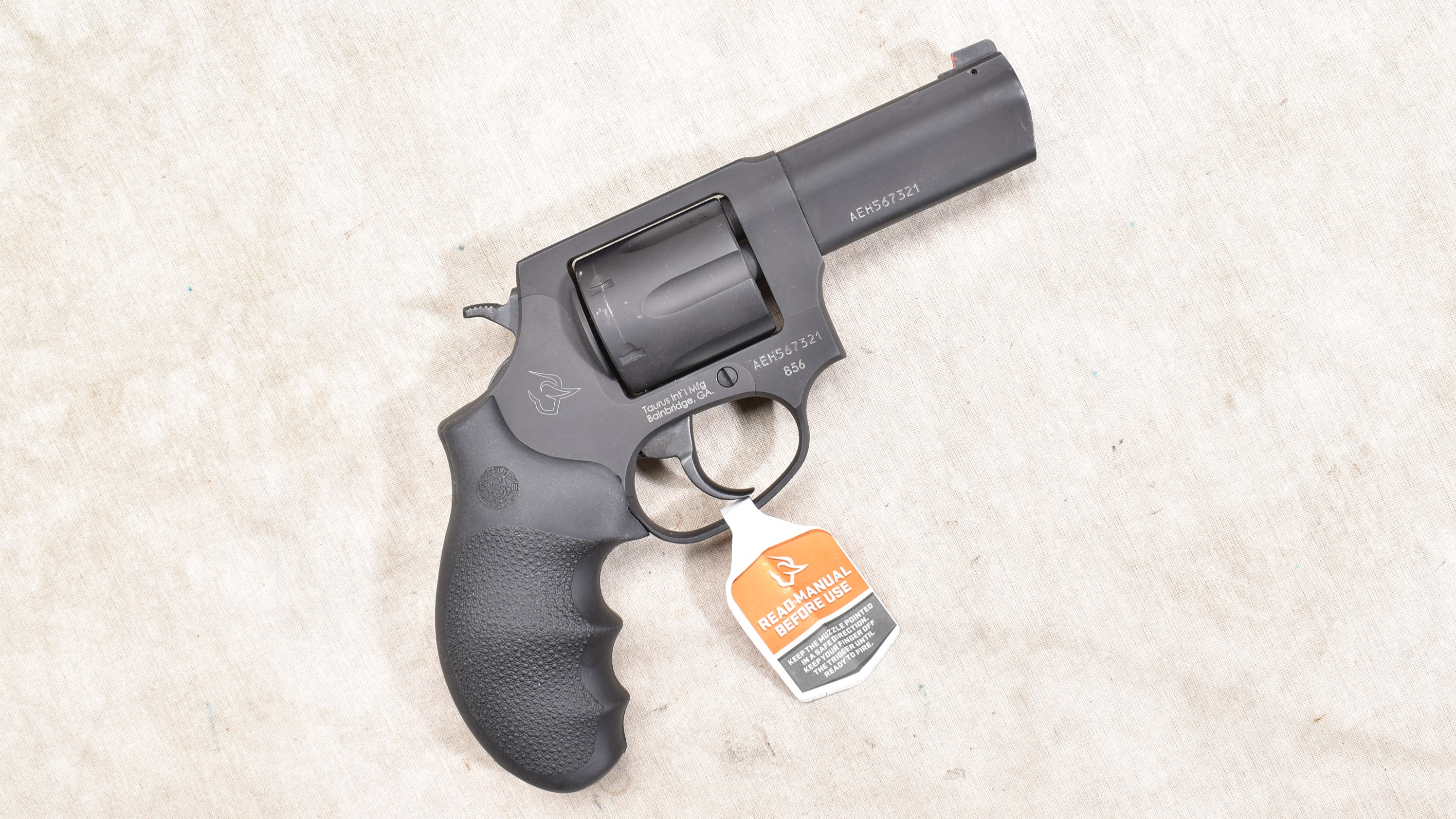 Taurus Model 856 compact revolver chambered in .38 Special, fitted with a 3-inch barrel. This six-shot revolver is ideal for concealed carry or a compact home defense option — reliable, easy to shoot, and well made. The frame and barrel show mild handling marks consistent with very good, cared-for use; no cracks, no gouges, and the bore is clean. Functions smooth in both double- and single-action.