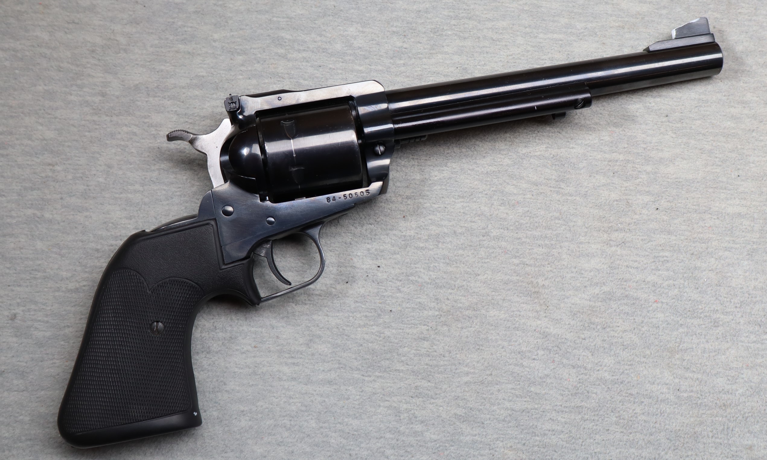 "Excellent condition, light finish wear and small scratches. Classic Ruger single action .44 Magnum revolver. 7 1/2"" Barrel, factory black finish, adjustable sights, 6 shot unfluted cylinder, single action trigger, serrated hammer and Pachmayr hard rubb
