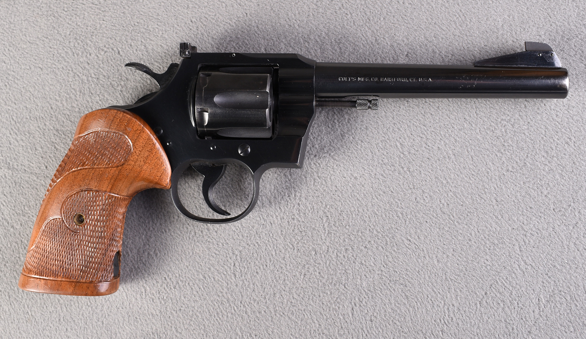 Previously owned by noted six-gun authority John Taffin, this Colt Officer's Model Match chambered in .38 Special is a revolver pistol with a 6-inch barrel, weighing 2.4 pounds and having a capacity of 6. The revolver remains in excellent condition and represents one of Colt's finest classic target revolvers, long respected for its superb accuracy and refined double-action trigger. This particular revolver can be seen photographed in Taffin's online article "Playin' Favorites," (https://americanhandgunner.com/handguns/playin-favorites-more-38-special/). It comes with a Certificate of Authenticity verifying its ownership by John Taffin. Firearms from the personal collection of John Taffin represent a rare opportunity for collectors and enthusiasts to own a revolver connected to one of the most respected writers and historians in the world of classic American sixguns.