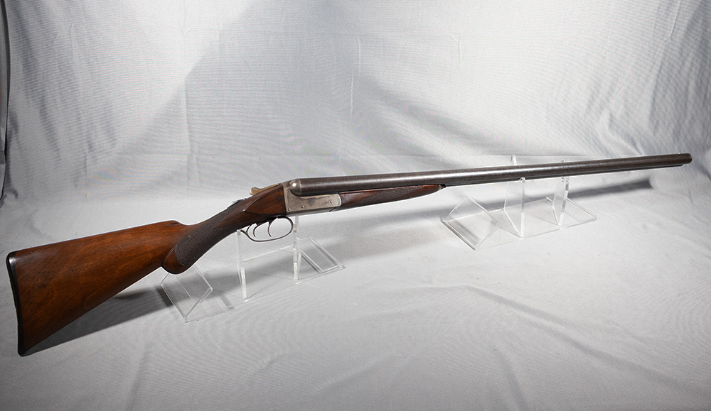 The Model 1894 was Remington's first hammerless side by side shotgun. It was produced from 1894 to about 1910, and around 41,000 units were sold. They were known as solid, well-built guns from the company's Ilion, NY, era (pre-1920's), and were better quality, with a tighter fit and finish, than the later economy-grade Model 1900. Note that Damascus steel barrels from the era were typically proofed for black powder or early low-pressure smokeless powder loads and are not safe to fire modern loads without a thorough inspection by a qualified gunsmith. This one is an A-grade (entry level) model, dating from early 1905. The 30" Damascus steel barrels are choked tight on both sides, which was typical for a bird hunting gun at the time. It's in average used condition and has a crack across the butt plate. Sometimes it's difficult to capture in photographs the faint and/or faded markings on older guns, so if you have questions about this listing please feel free to give us a call at the Kearney Cabela's Gun Library. No box or case is included.