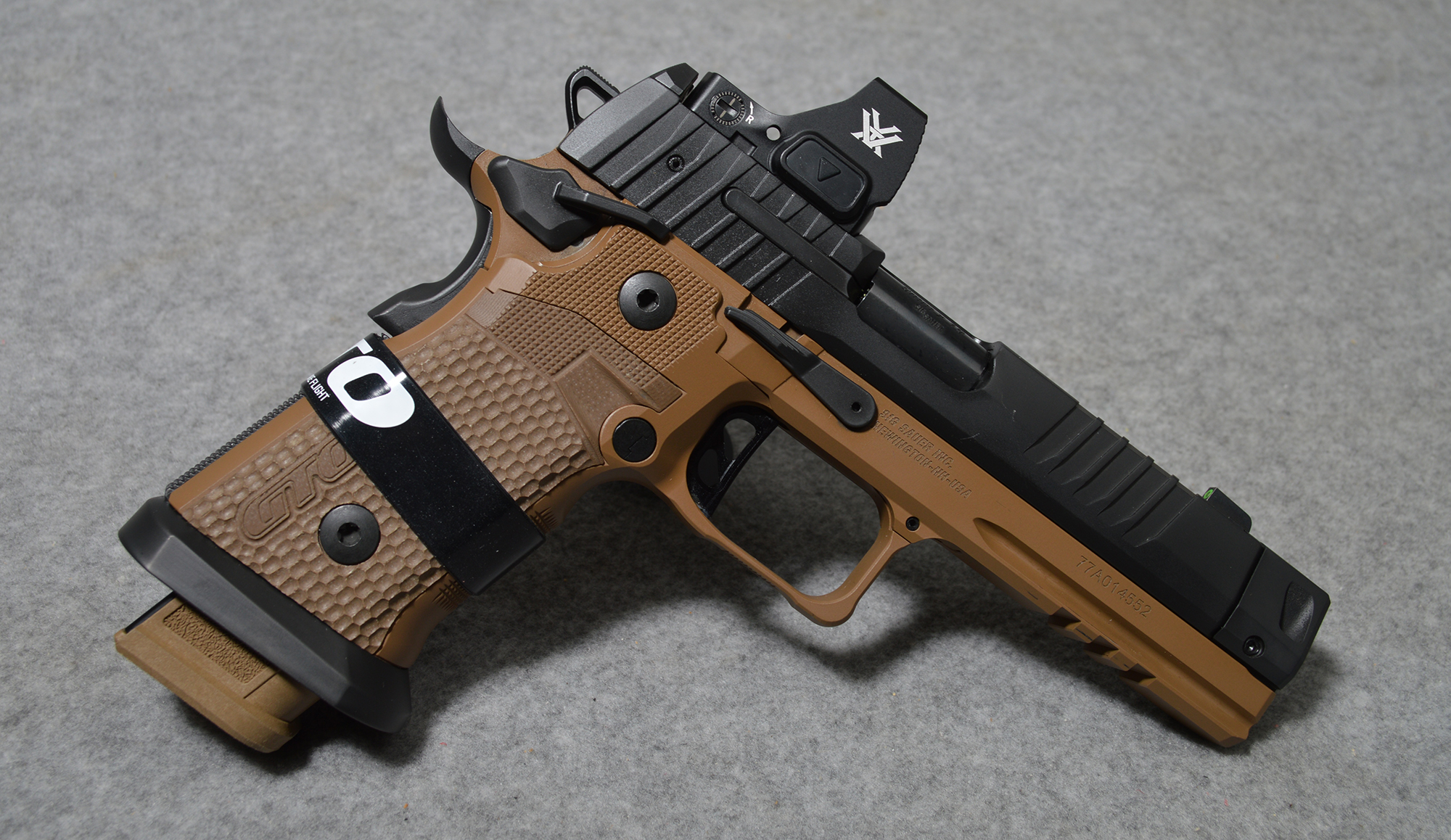 The SIG SAUER P211-GTO is a high-performance, 9mm, single-action-only (SAO) pistol designed for competition and speed, often considered SIG's answer to the 2011-style market. It features a 4.4-inch bull barrel with a Mach3D compensator, a steel frame with an alloy grip, and uses readily available P320 magazines. This pistol is in excellent condition, and comes with the factory box, 3 magazines, and a Vortex Defender-ST red dot optic.