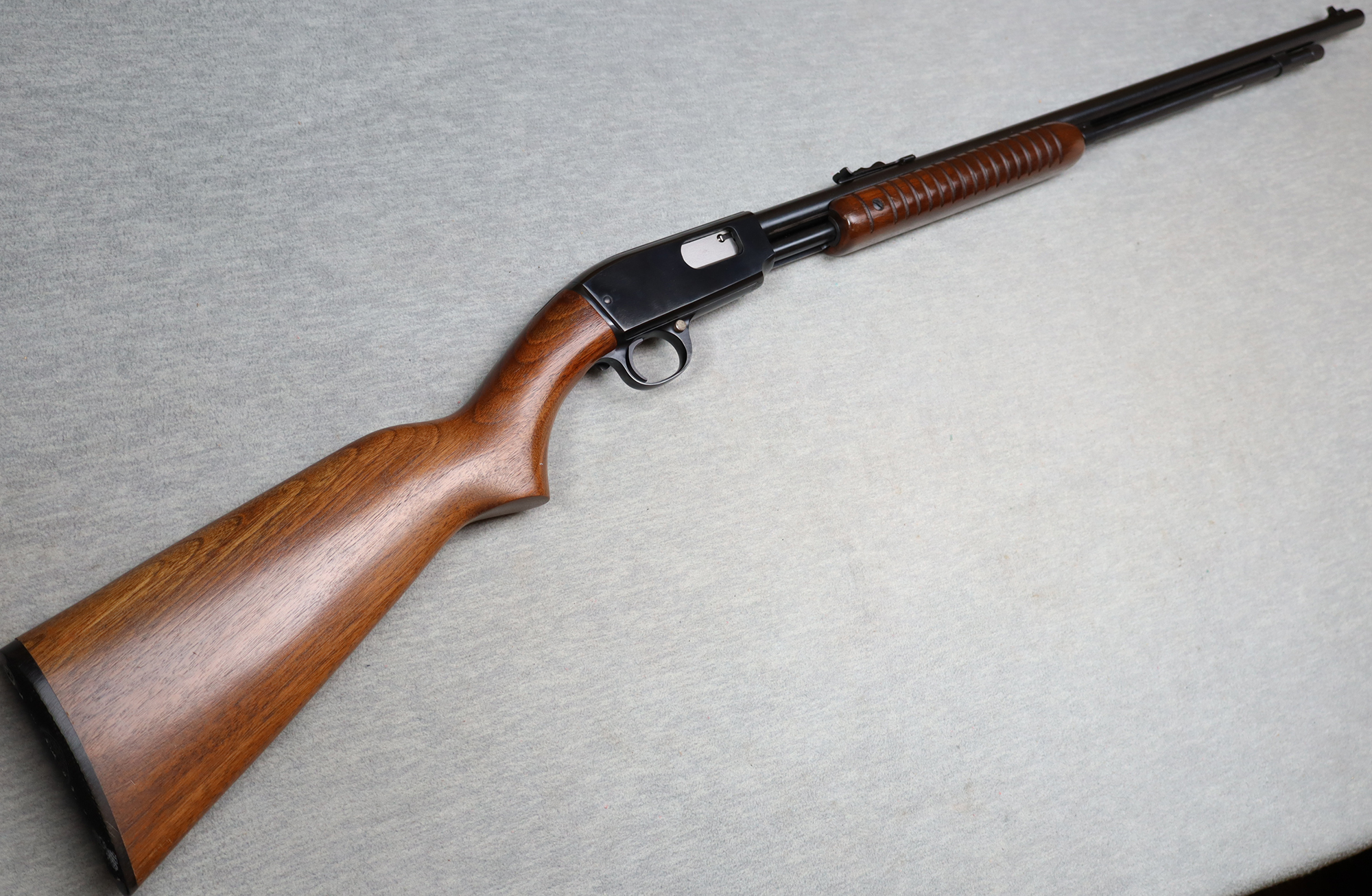 Produced between 1932 and 1963, Winchester's slender little Model 61 gave shooters a sturdy pump-action .22 that would have been the belle of the ball during the glory days of parlor plinkers and gallery guns at the turn of the 20th century. The gun is a hammerless design with a tubular magazine. The Model 61 was Winchester's answer to the hammerless Remington and Marlin rifles being produced. This example is from 1962 and is in great shape.