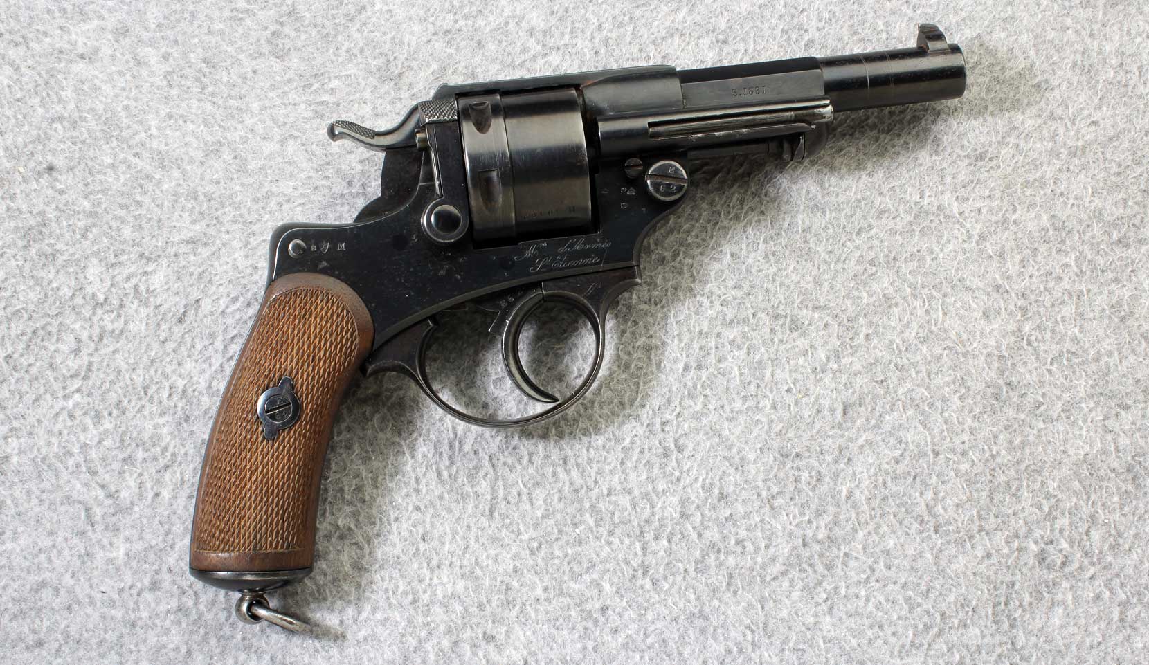 The St. Etienne "MAS" Modèle 1873 Chamelot-Delvigne was the first double-action revolver adopted by the French Army, serving as a standard sidearm from 1873 until it was officially replaced by the Modèle 1892. Despite its age, it remained in use through both World Wars and was a favored weapon of the French Resistance. This revolver has been reblued but it doesn't appear to have been polished beforehand. It would be an interesting addition to any collection. Manufactured in 1881.