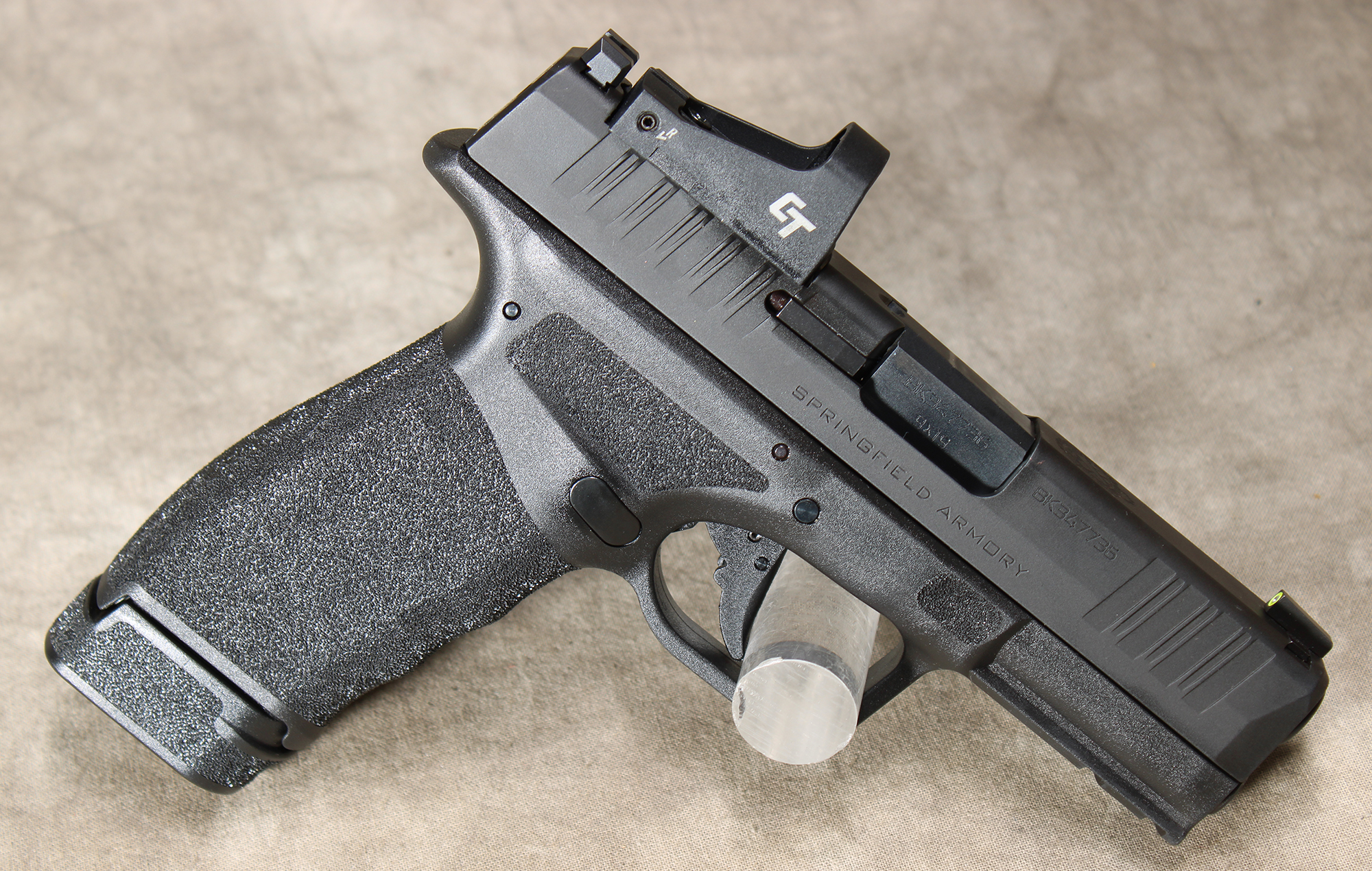 This gun is in excellent overall condition with little to no signs of use and handling. It is the gear up package that comes with the original box, soft case 5 total mags, and the crimson trace red dot. Chambered in 9MM.