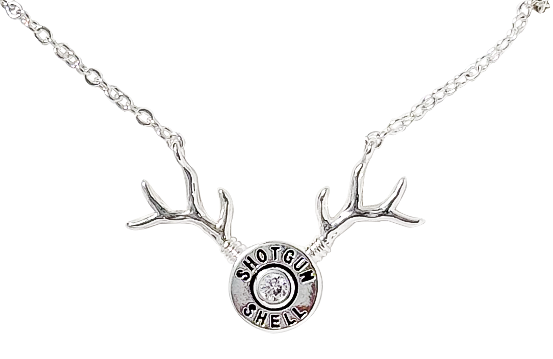 New! Amanda Blu Antler and Shotgun Shell Cubic Zirconia Silver Necklace