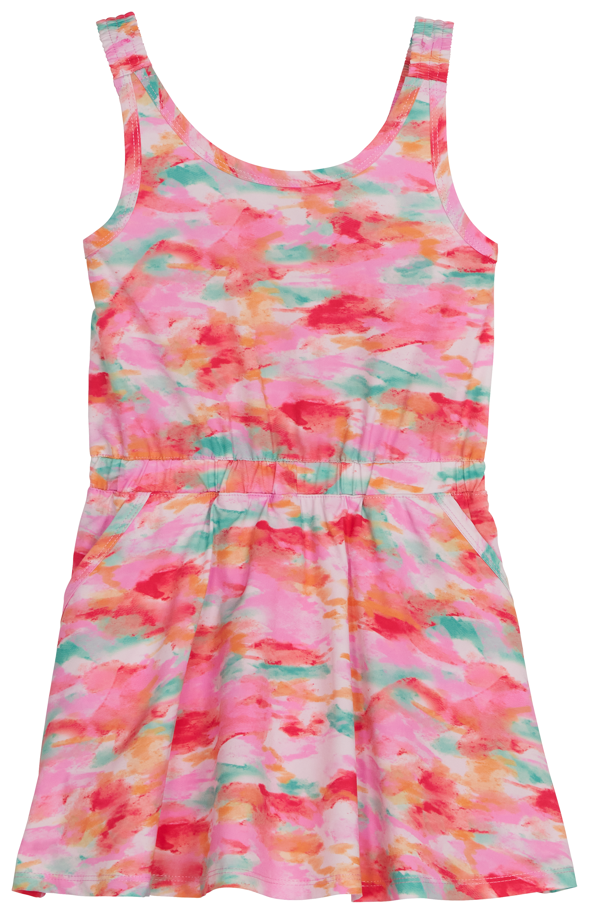 The Bass Pro Shops® Performance Dress for Toddlers has built-in shorts for total comfort to match its adorable look. This Bass Pro kids' dress has lightweight, soft fabric with recycled fiber in the shorts for eco-friendly design. Moisture-wicking fabric, UPF 50+ sun protection, and odor-fighting enhancements make it a smart choice. An elastic, gathered waist provides a snug, comfy fit. Dress: 90% polyester/10% spandex. Built-in Shorts: 79% recycled polyester/21% spandex. Machine wash. Imported.
