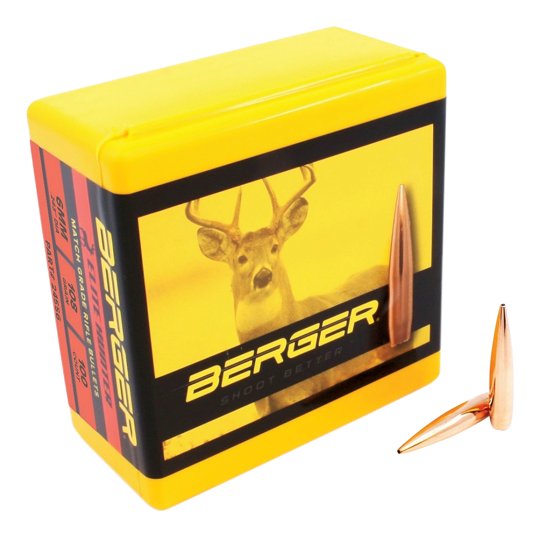 Berger® Elite Hunter Bullets are preferred by benchrest competitors, big-game hunters, and varmint shooters worldwide for their superior accuracy. For hunters and shooters that demand precision, Berger Bullets are manufactured to super-tight tolerances with exceptional quality control. Their exacting core manufacturing process gives you more reliable drop, consistent BC, and better accuracy. The hybrid ogive starts off as a tangent, making it easy to tune, and then transitions to a secant ogive, creating a flatter trajectory and minimizing wind drift. The boat tail offers increased aerodynamic performance. Boasting an unprecedented +/- .0003" tolerance, J4 Precision copper jackets are slightly thinner, allowing for 2" to 3" of penetration before rapidly expanding for huge wound cavities.
