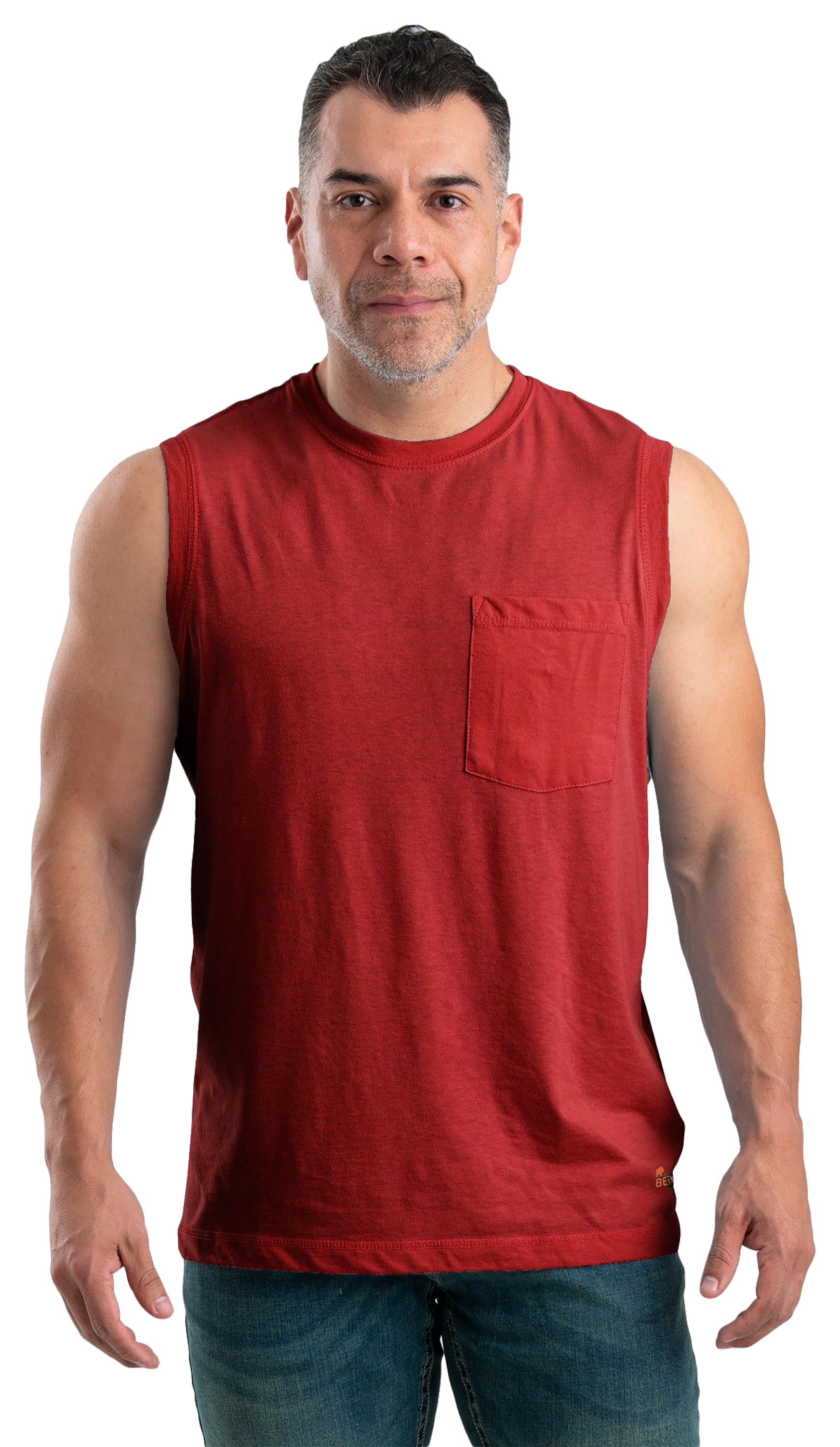Go with the cool comfort of a Berne® Performance Sleeveless Pocket T-Shirt on the hottest days. The 4.2-oz. 60% cotton/40% polyester jersey dries quickly and keeps you cool thanks to superior moisture-wicking technology. Stain-release properties ensure easy care. Taped neck seam and tagless neck label feel smooth against the skin. Use the chest pocket to store small items. Machine wash. Imported. Manufacturer style #: BSM35.