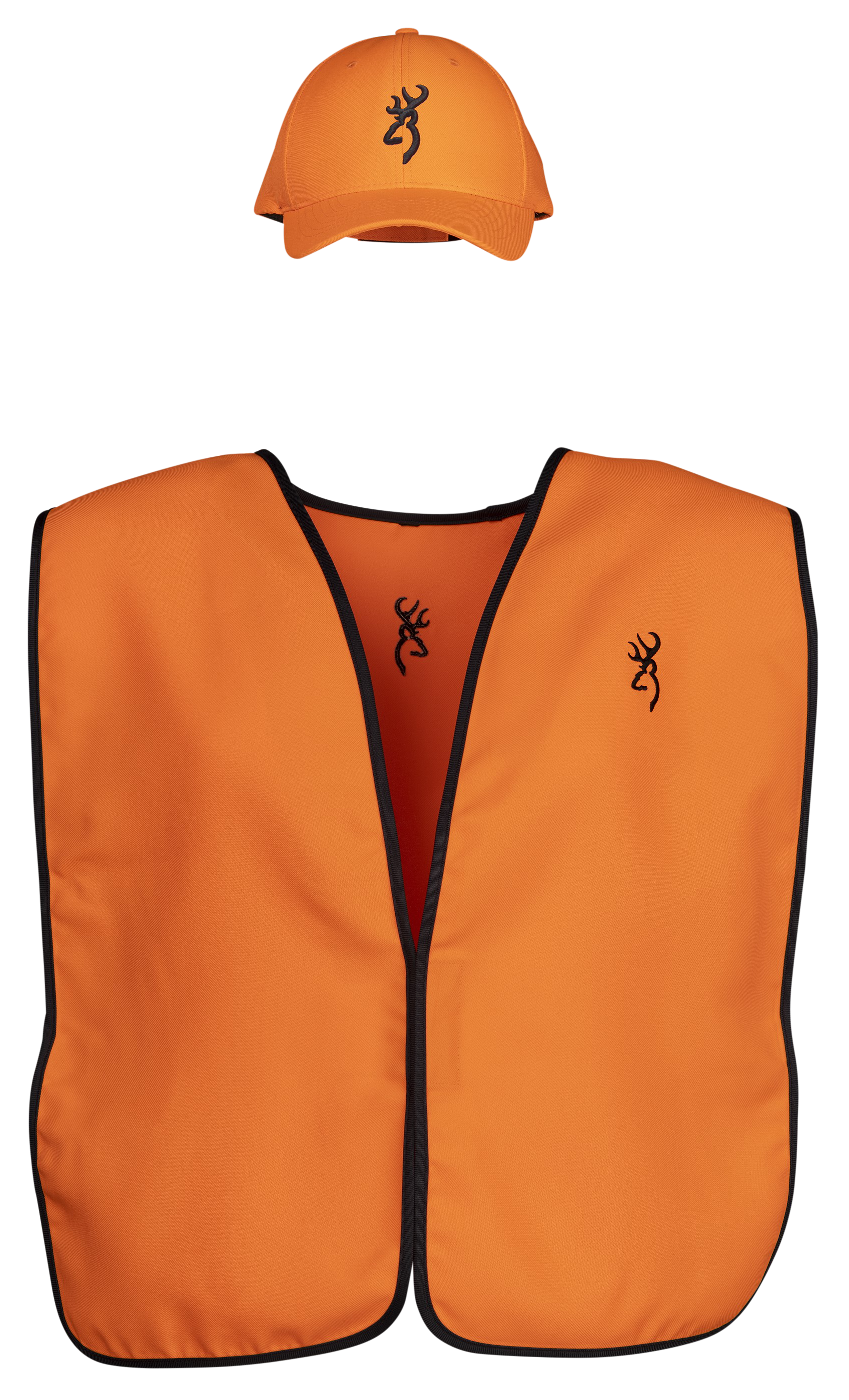 Safety first. The Browning® Hunting Vest/Cap Combo brings safety-minded design with 750 sq. in. of ANSI-approved standard blaze while pursuing your favorite game. The durable polyester hat and vest each feature a hook-and-loop closure that lets you adjust them to your size. Vest: 100% polyester twill fabric with hook-and-loop closure. Cap: 100% polyester cap with hook-and-loop closure. Machine wash. Imported.