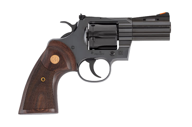 The Colt® Blued Python 3" DA/SA Revolver with Walnut Grips features 30% more steel beneath the rear sight – giving it enough strength and rigidity to put 6 rounds of .357 Magnum or .38 Special +P downrange with authority and accuracy. The full-size walnut grips give you plenty to hold onto, while the fiber-optic front sight and adjustable target rear put your rounds right where you want them. A flawless blued finish completes the package, making the Colt Blued Python equal parts beauty and beast.