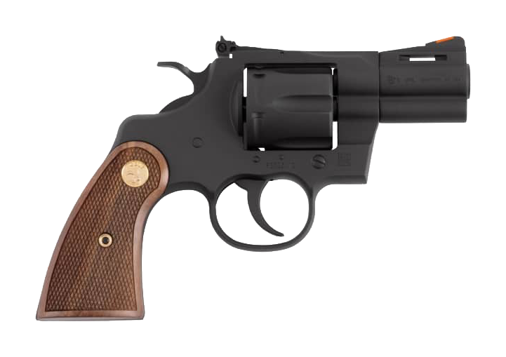 The Colt® Matte Blued Python DA/SA Revolver with Walnut Grips features 30% more steel beneath the rear sight – giving it enough strength and rigidity to put 6 rounds of .357 Magnum or .38 Special +P downrange with authority and accuracy. The full-size walnut grips give you plenty to hold onto, while the fiber-optic front sight and adjustable target rear sight put your rounds right where you want them. A flawless matte blued finish completes the package, making the Colt Matte Blued Python equal parts beauty and beast.
