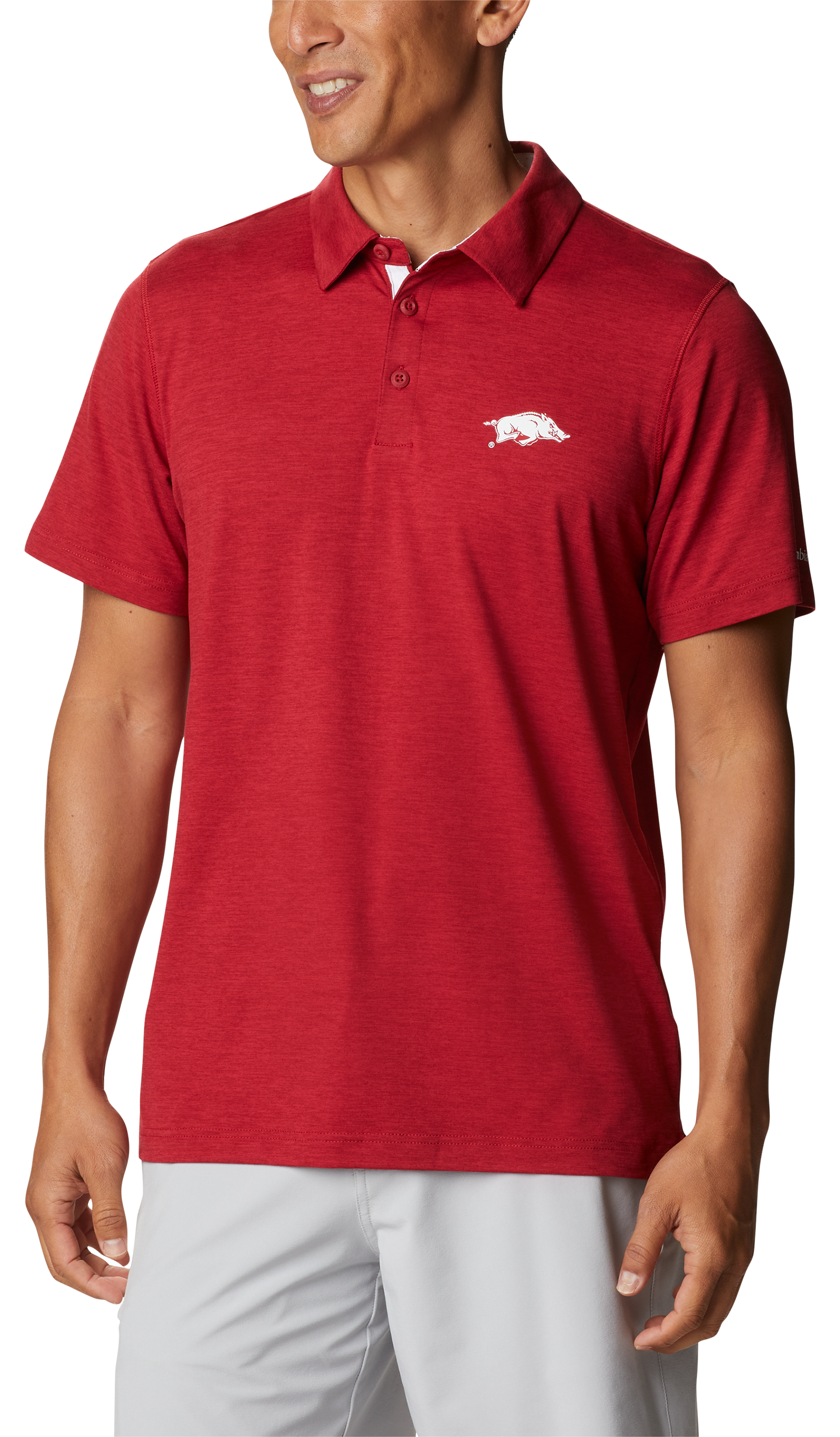 Look great, feel great, and cheer your favorite college team to victory while wearing the Columbia® Collegiate Tech Trail Short-Sleeve Polo for Men. This handsome men's shirt from Columbia delivers classic polo style along with your favorite university's bold colors and iconic logo. Whether you're fishing or golfing, the Omni-Shade™ UPF 50+ sun protection keeps your skin safe from the sun's damaging rays. The Omni-Wick™ fabric is highly breathable and its moisture-wicking, quick-drying performance helps keep you dry and comfortable in the heat. The 94% polyester/6% elastane blend offers softness, breathability, and it stretches enough to keep you casting or swinging with total freedom of movement. Center Back Length: 28". Machine wash. Imported. Manufacturer style #: 1929591.
