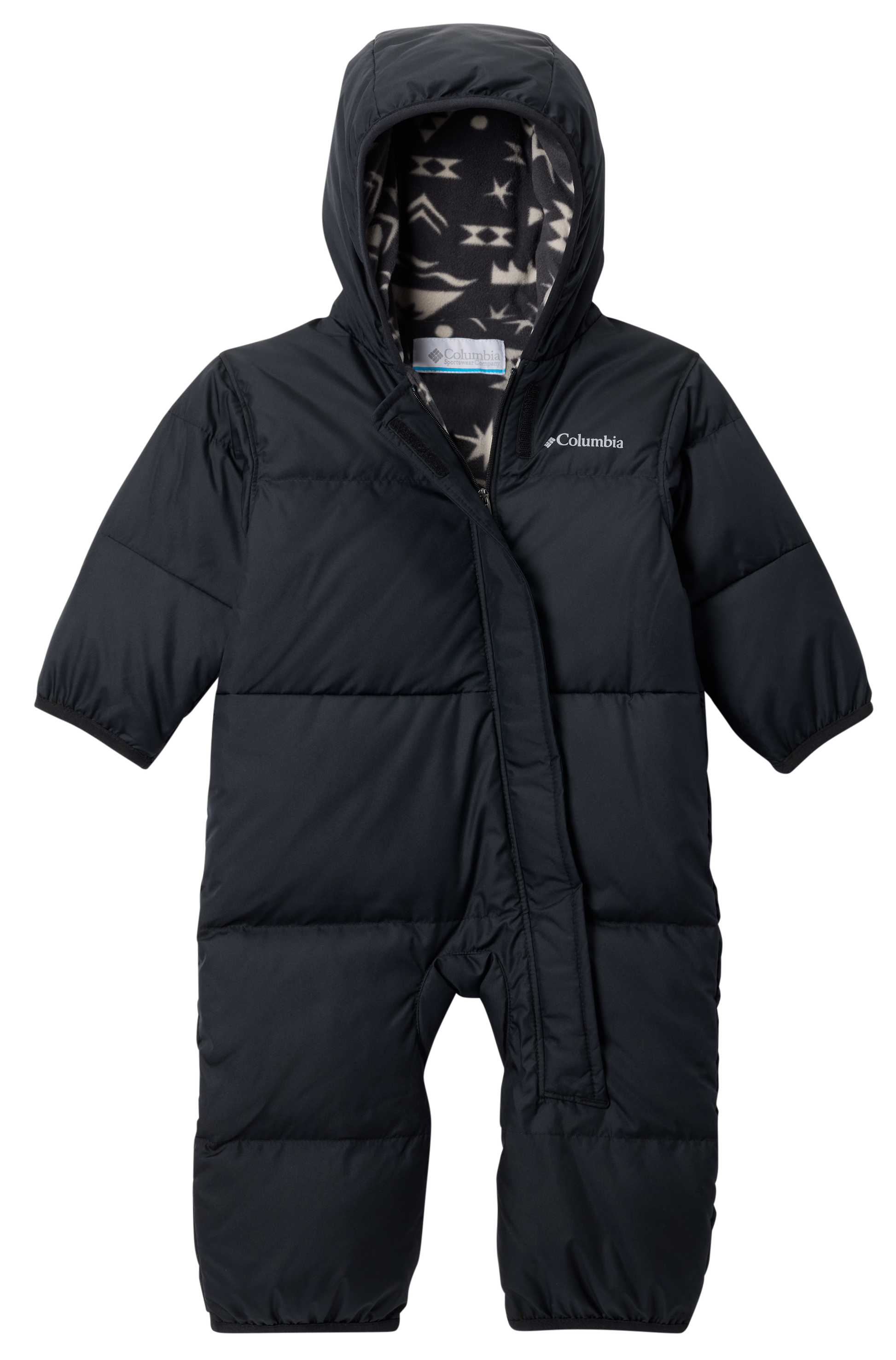 Keep baby warm and protected from the elements with the Columbia® Snuggly Bunny™ II Bunting for Babies. Water-resistant fabric and down fill insulation provide great protection and warmth. Fold-over hands and feet along with the micro-fleece-lined hood and sleeve provide a cozy fit. Reflective detailing gives extra flair. 100% polyester shell and lining. Insulation: 450-fill-power down insulation, RDS certified. Machine wash. Imported. Manufacturer style #: 2088791.