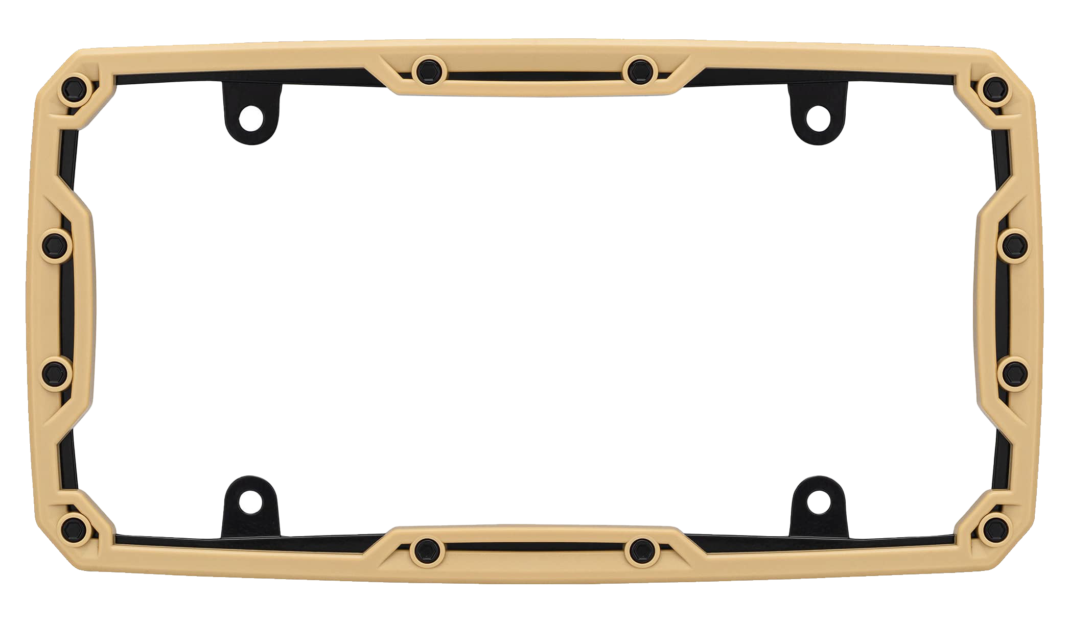 The Cruiser Accessories® Beadlock License-Plate Frame takes your ride to the next level. Mimicking the rugged durability and style of beadlock wheels, the design brings this same feel to your license plate. This license frame simulates the 2-part look of bead bolts surrounding the frame and locking down the tan faceplate firmly to the gloss black frame. The faceplate is made of durable ABS plastic, while the frame is made of die-cast metal with a high-gloss black finish. Engineered to "Show More Plate," this frame does not obstruct state names or registration stickers. Easy installation with basic tools. Fits 6"H x 12"W license/novelty plates.