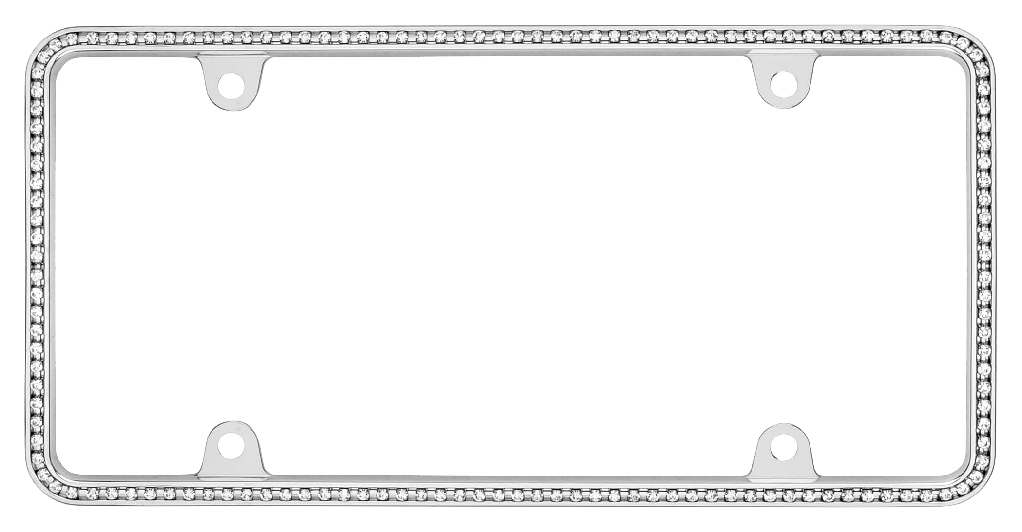 The Cruiser Accessories® Diamondesque License Plate Frame is an elegant frame sure to bring class to any vehicle. Featuring a continuous row of approximately 125 clear, faceted glass crystals. Engineered to show more plate, this slim license frame from Cruiser Accessories maximizes the visibility of the license plate and does not obstruct state or registration information. Made of die-cast zinc, chrome plated and carefully hand polished. Easy installation. Fits 6"H x 12"W license/novelty plates.