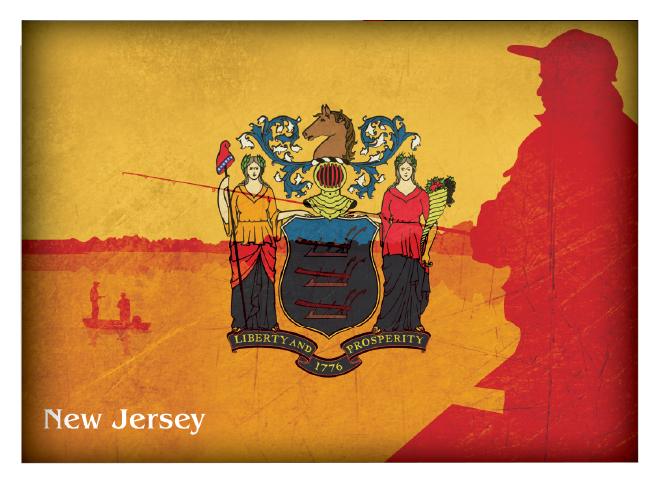 • Features the New Jersey state flag with a silhouetted fishing scene
