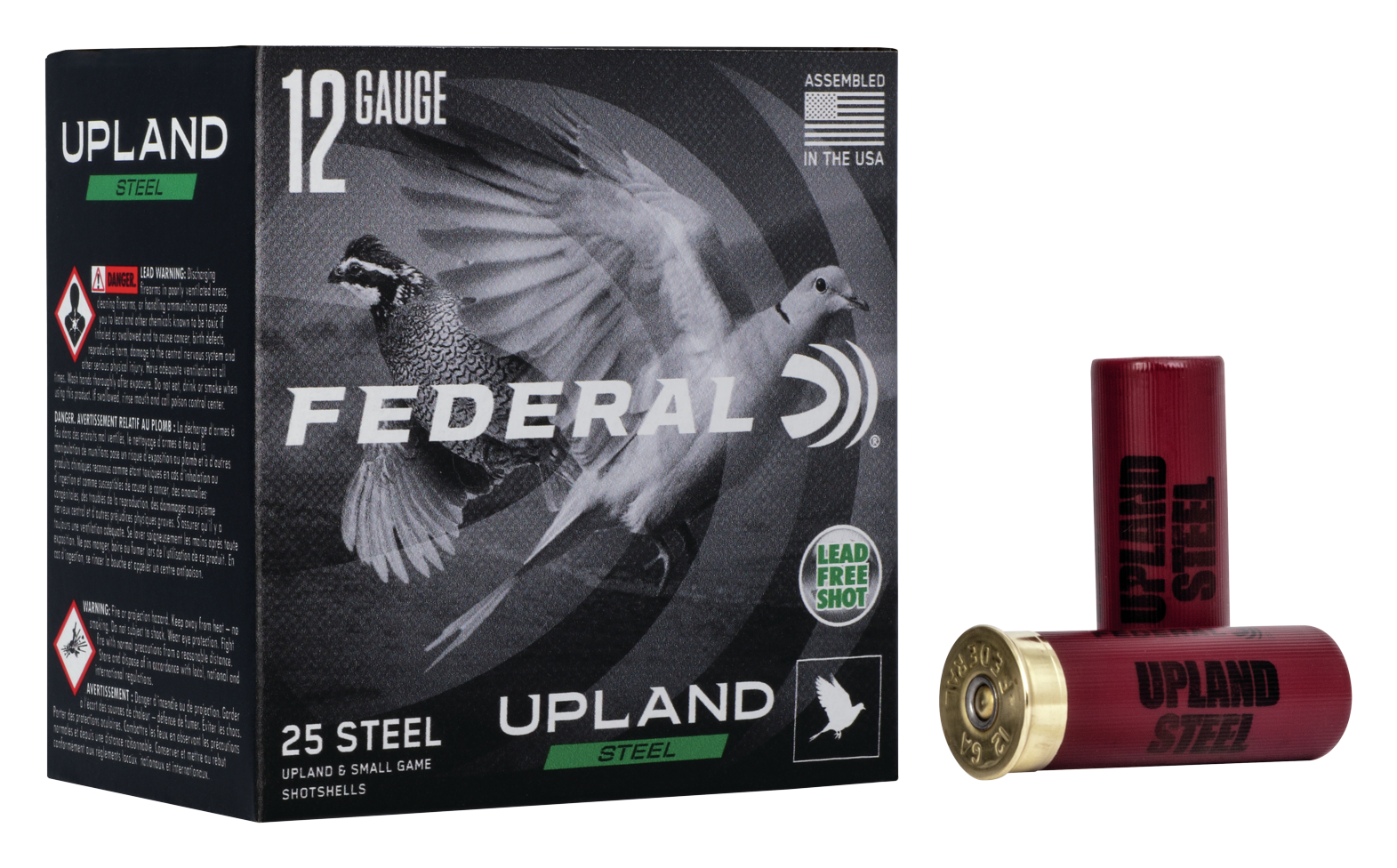 Finish your target with a single, clean shot with the Federal® Upland Steel Shotshells. This shotgun round boasts consistently tight patterns, consistent performance, and high velocities that hunters need for hard-to-hit, high-flying birds, without breaking the bank. This lead-free, steel shotgun ammo is ideal for dove and upland game hunting, especially in areas where lead shot is prohibited.