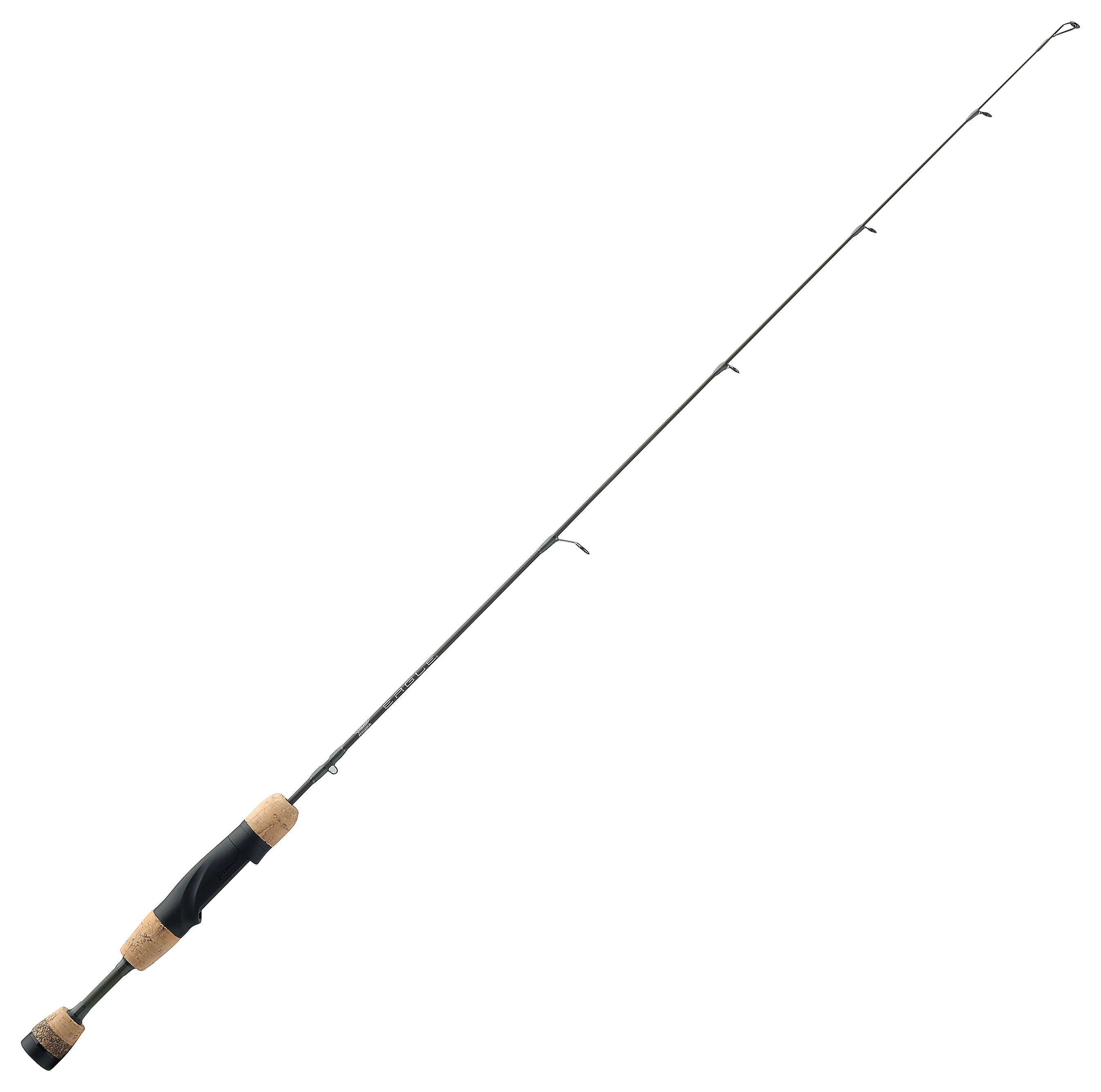Meet the next generation of Fenwick Eagle® Ice Spinning Rod technology. This classic stick now features a performance-driven, full butt-to-tip redesign, resulting in a superbly balanced, sensitive rod with crisp action and a great hand fit. Each blank in the series is crafted of a 24/30-ton solid graphite blend bonded with Fenwick's proprietary reinforcing resin. Lightweight and durable, it's fitted with stainless steel guides that have thin zirconia inserts. The base of the rod delivers on the promise of comfortable handling, with interlocking part lines that provide seamless transitions. The Fenwick-designed reel seat fits the hand nicely and has a soft-touch finish; it adjoins a smooth forward-tapered foregrip that accommodates finger placement for super-sensitivity. Multi-material handle components enhance the overall balance and feel.