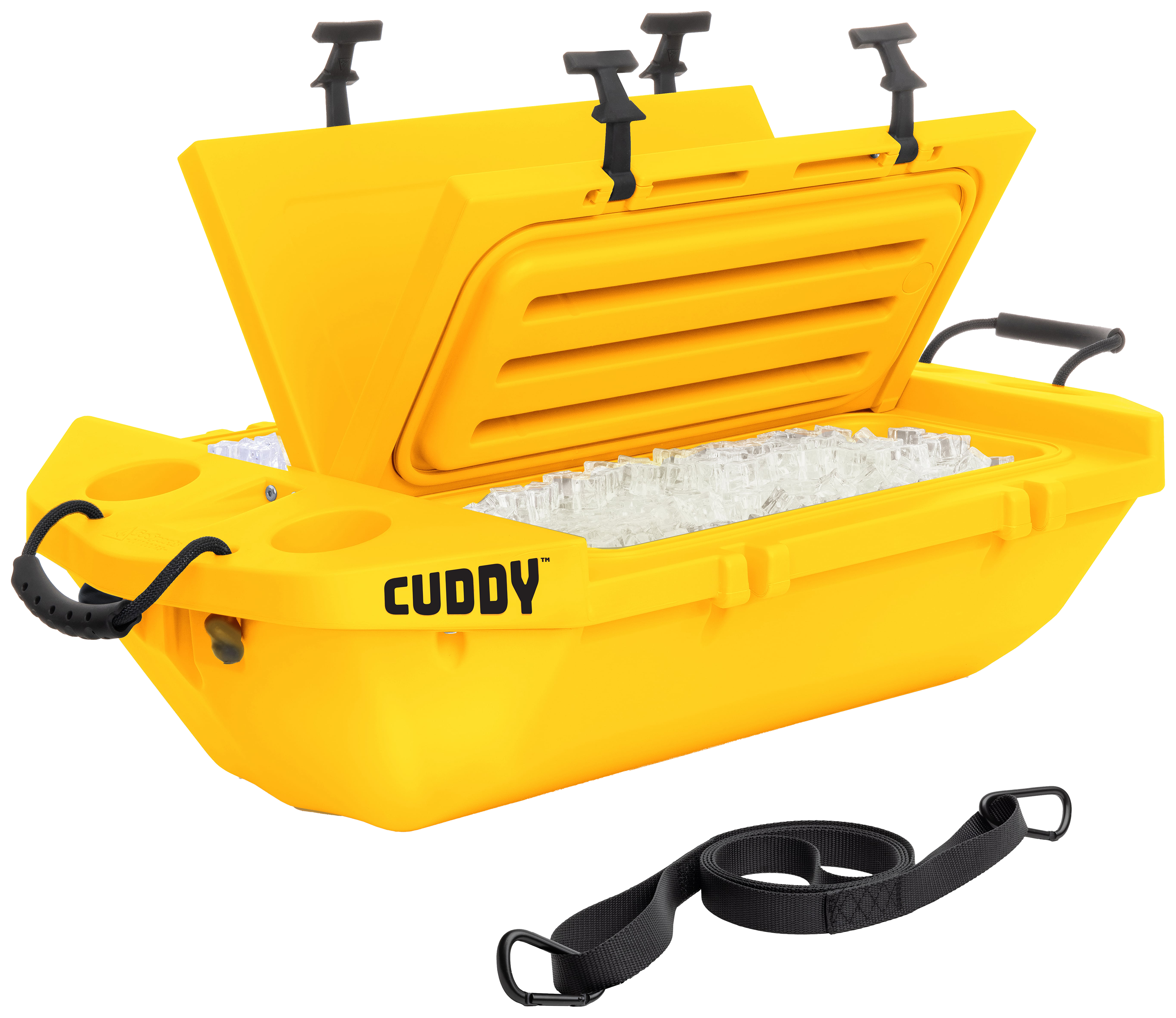 The GoSports Outdoors Cuddy™ Floating Cooler is built to perform in and out of the water, bringing a whole new level of convenience to recreational water sports. The Cuddy combines all of the features and conveniences of a modern cooler with the additional ability to be taken out on the water. This floating cooler boasts an unsinkable Sure Float™ design and hydrodynamic Flow Tow™ profile that allow it to be towed, tethered, or anchored in any body of water. Since you can't always be out on the water, the Cuddy also works on land, making it an all-purpose outdoor accessory. 2 large lids provide easy access to your drinks, and 4 integrated cupholders let you keep them close at hand. Rugged high-density polypropylene (HDPE) construction with dual-wall Snow Bead Insulation keeps everything cold for up to 48 hours, and the 4 T-latch handles secure the lids. Comes with a 6' tow strap and 2 carabiners. The GoSports Outdoors Cuddy Floating Cooler is the last cooler you will ever need, and it's certain to wow your friends with cold drinks always within reach.