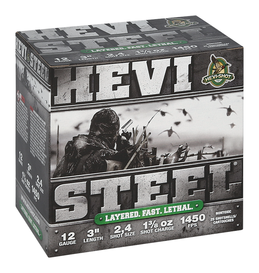 When steel is a legal requirement and speed is a must, HEVI-Shot® HEVI-Steel® Layered Load Shotshells deliver. The first all-steel load from HEVI-Shot, HEVI-Steel produces velocities beyond competing loads, delivering more energy and knocking more ducks and geese out of the sky. For all-steel waterfowl hunting shells, HEVI-Steel is second to none.