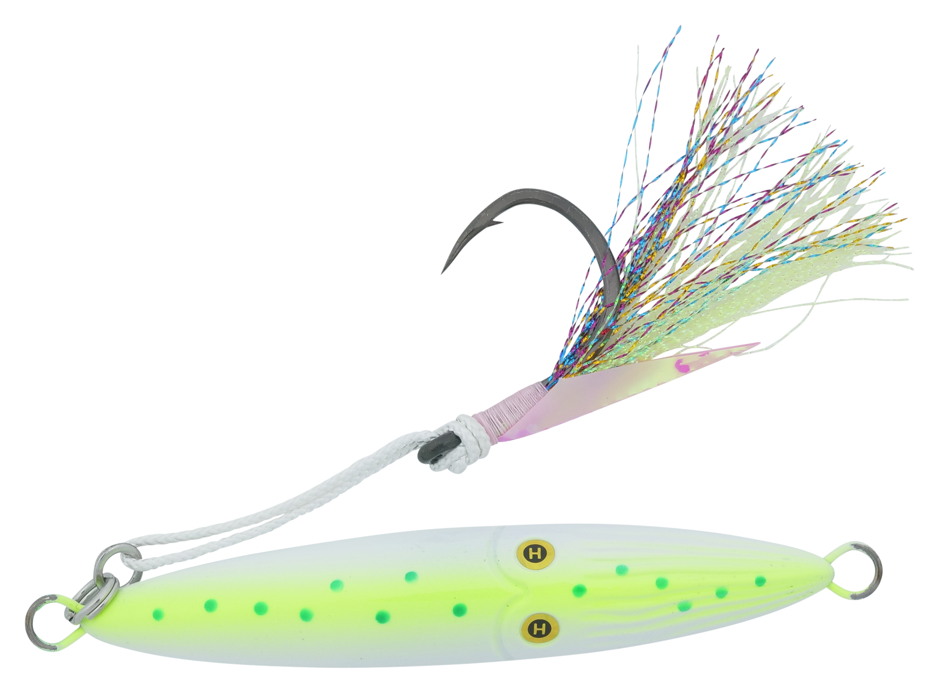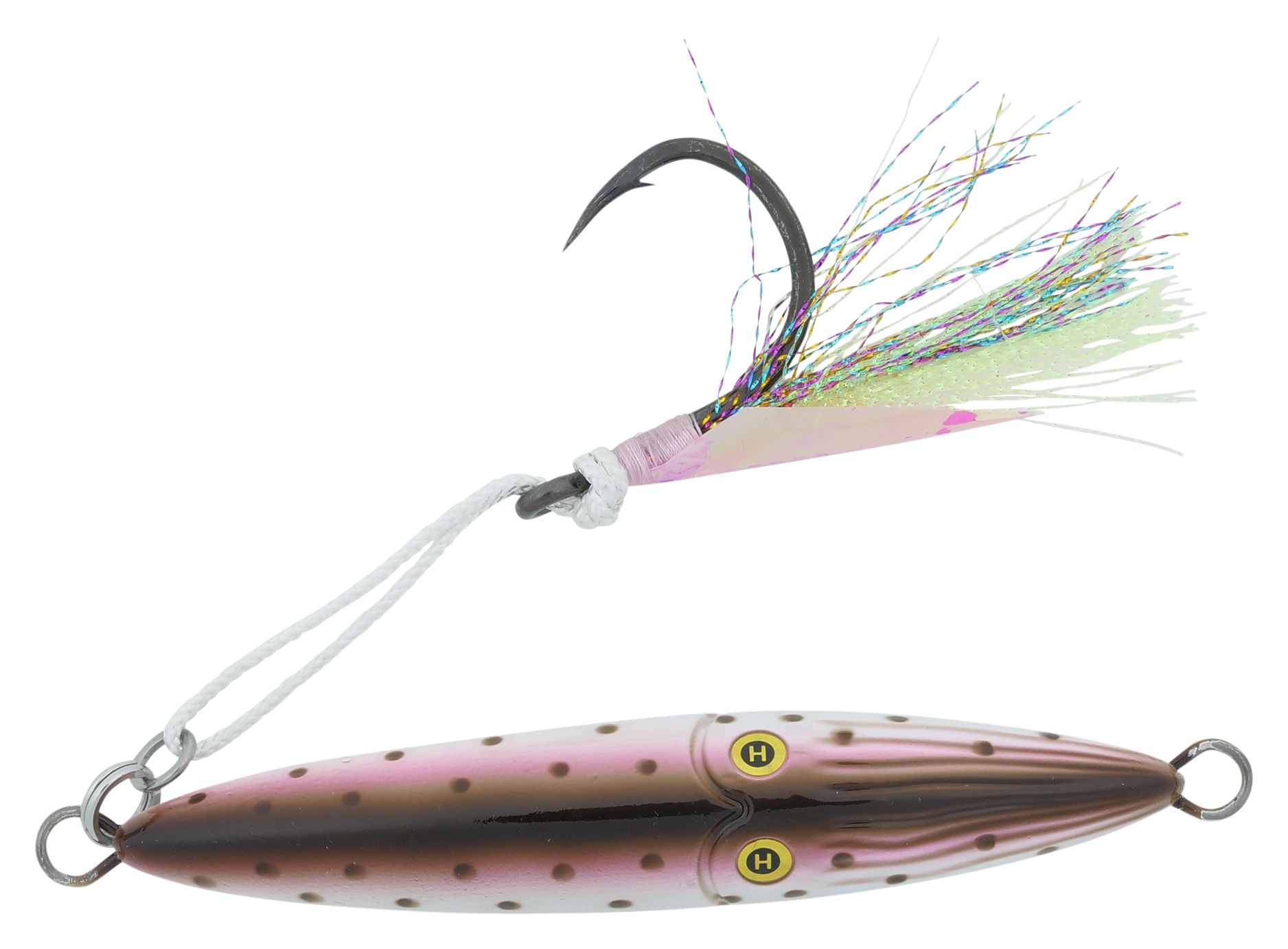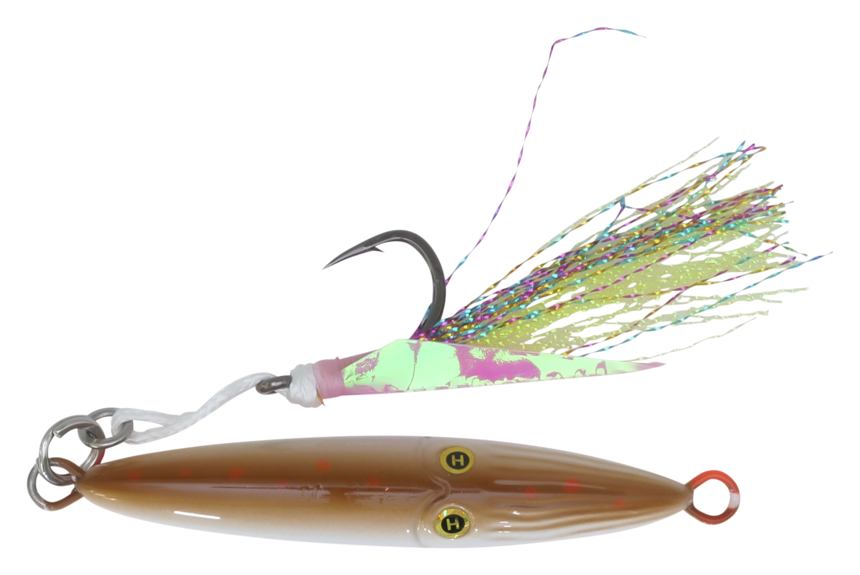 Featuring a BulletCast design with a solid metal core, the Hogy® Lures Squinnow Jig delivers exceptional casting capabilities. Its through-wire construction and heavy-duty stainless steel split ring give this saltwater jig the toughness to withstand ocean-dwelling predators, and its fast-sinking profile is perfect for deep-water jigging. This inshore jig is finished with reflective scales or Deepwater Glow, ensuring visibility wherever you fish, and a pair of laser eyes give fish a target to attack. The Hogy Lures Squinnow Jig is finished with a VMC® 3X assist hook.