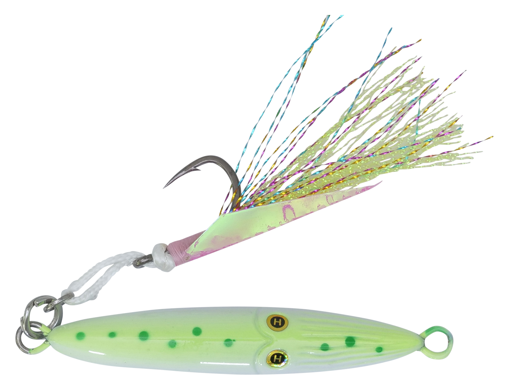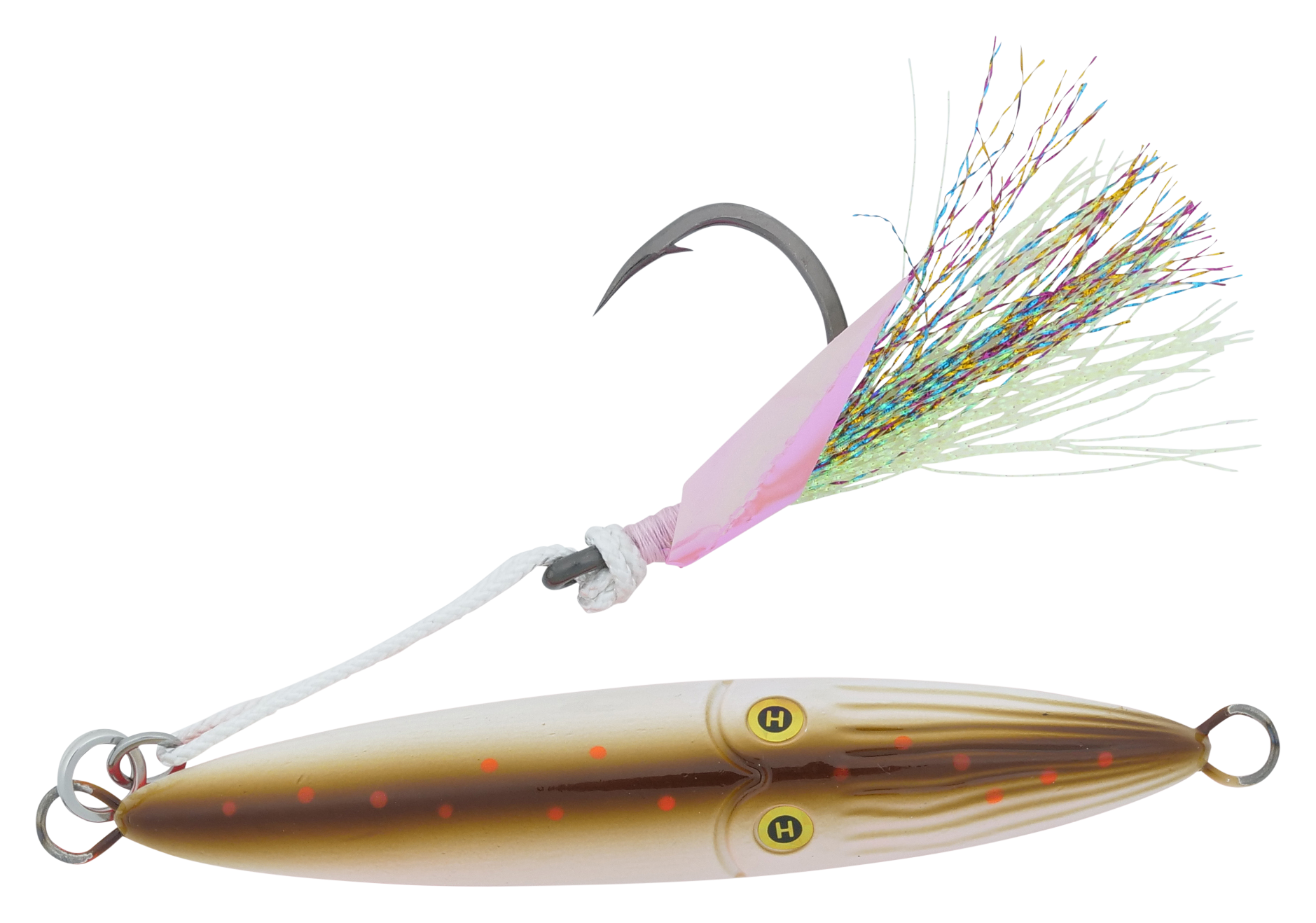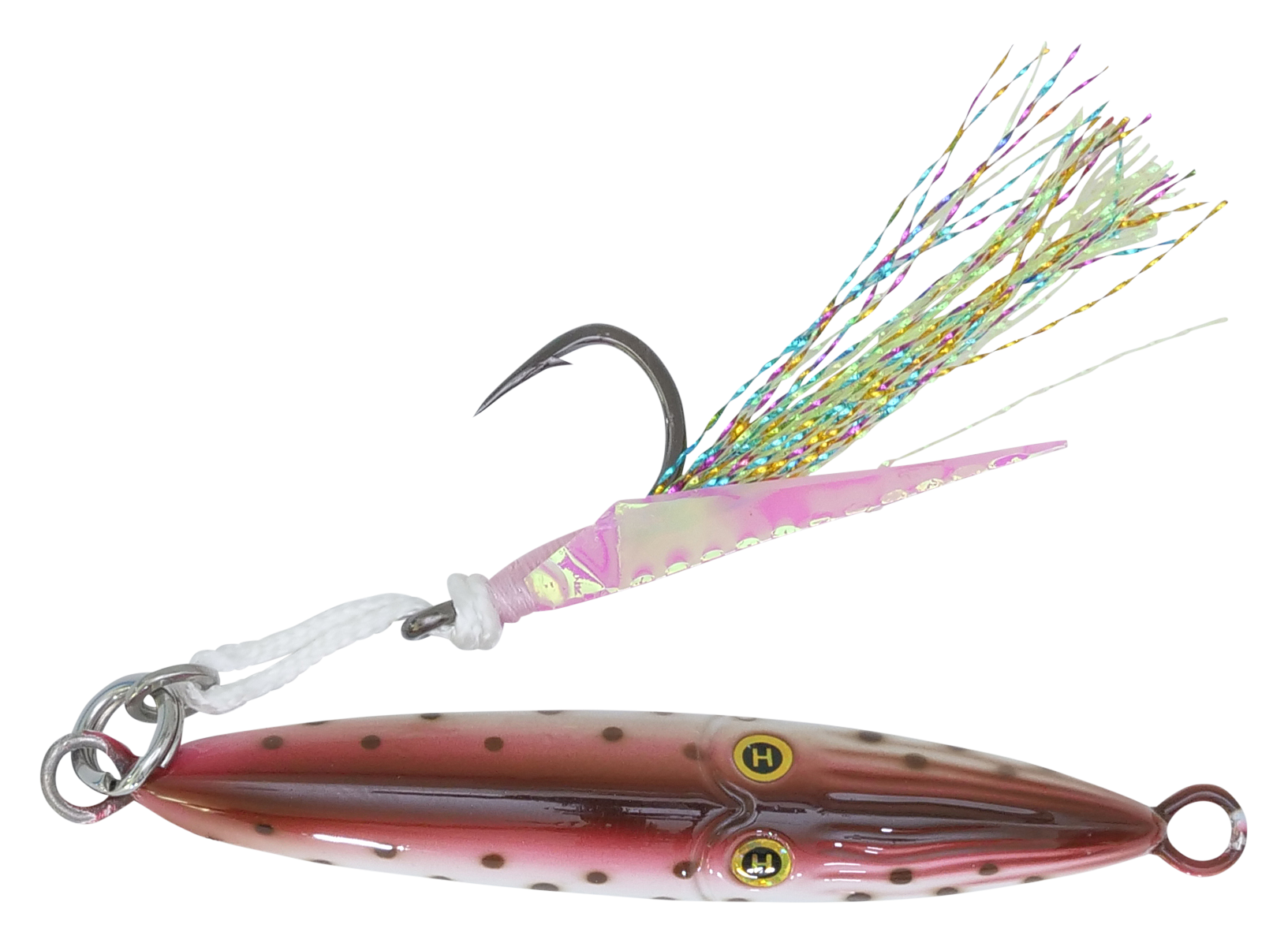 Featuring a BulletCast design with a solid metal core, the Hogy® Lures Squinnow Jig delivers exceptional casting capabilities. Its through-wire construction and heavy-duty stainless steel split ring give this saltwater jig the toughness to withstand ocean-dwelling predators, and its fast-sinking profile is perfect for deep-water jigging. This inshore jig is finished with reflective scales or Deepwater Glow, ensuring visibility wherever you fish, and a pair of laser eyes give fish a target to attack. The Hogy Lures Squinnow Jig is finished with a VMC® 3X assist hook.