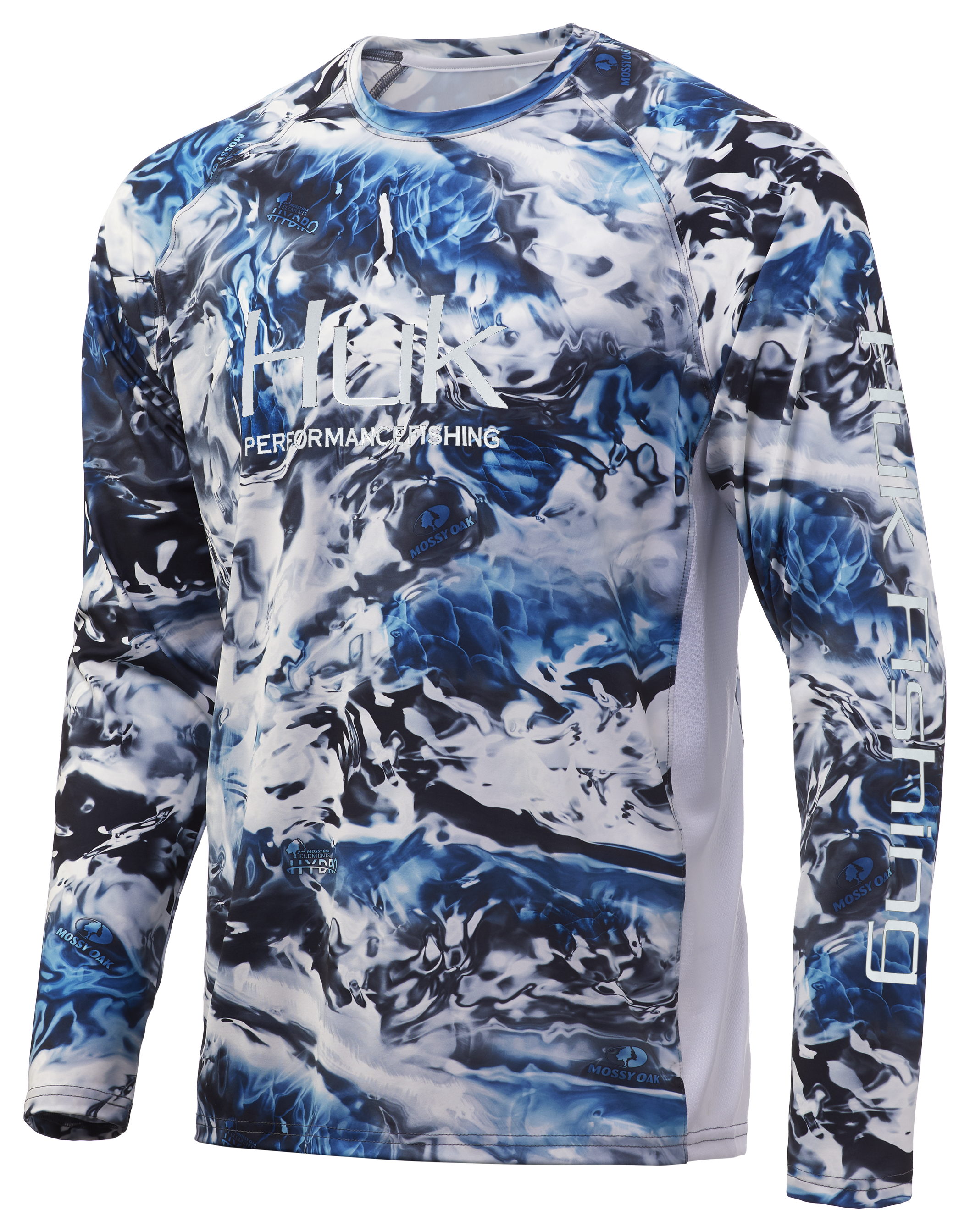 The Huk® Mossy Oak® Pursuit Long-Sleeve Shirt for Men keeps you comfortable and protected on the water or in the field. This Huk fishing shirt delivers a professional appearance, with branding at the chest, center back, and left sleeve, and an all-over camo print. It's loaded with technologies, including UPF 30+ sun protection, anti-odor treatment, stain-release treatment, and fast-dry moisture-wicking. The Huk Mossy Oak Pursuit Long-Sleeve Shirt has a crew neck and raglan sleeves for full range of motion. 90% polyester/10% spandex. Machine wash. Imported.