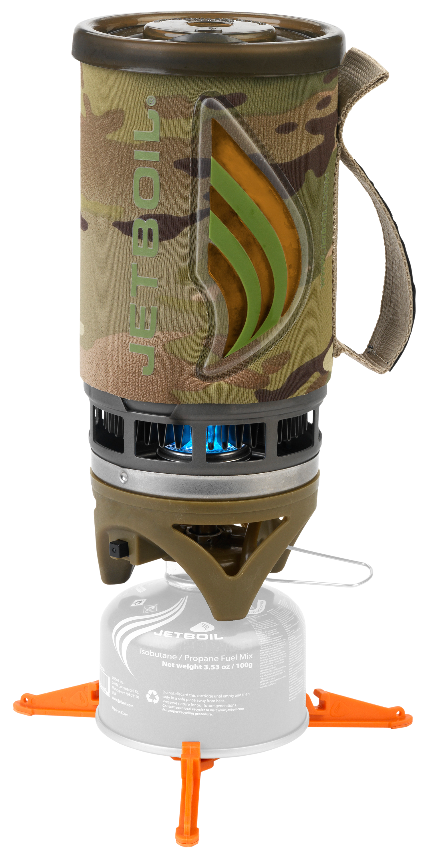 Enjoy your outdoor adventures even more with the Jetboil® Flash Cooking System. This compact, all-in-1 camp stove design combines the burner and cooking vessel in 1 easy-to-use unit. Everything you need to warm water or cook a meal on the trail stacks and stores inside the Flash's 1L cooking cup. Light the adjustable stainless steel burner with a click of a button, and within 2 minutes, it's boiling water for coffee, hot chocolate, instant soup, or a gourmet freeze-dried meal (not included). The burner secures the igniter, protecting it from bumps along the way. Designed to be 1 of the safest stove designs you can get, the Flash Cooking System's FluxRing® cooking cup clips onto the burner, preventing accidental spills. The stove also features a tripod base to ensure overall stability. The insulated cozy has a color-changing heat indicator that signals when contents are hot. Fits onto 100g or 230g Jetboil Jetpower isobutane/propane cartridges (not included).
