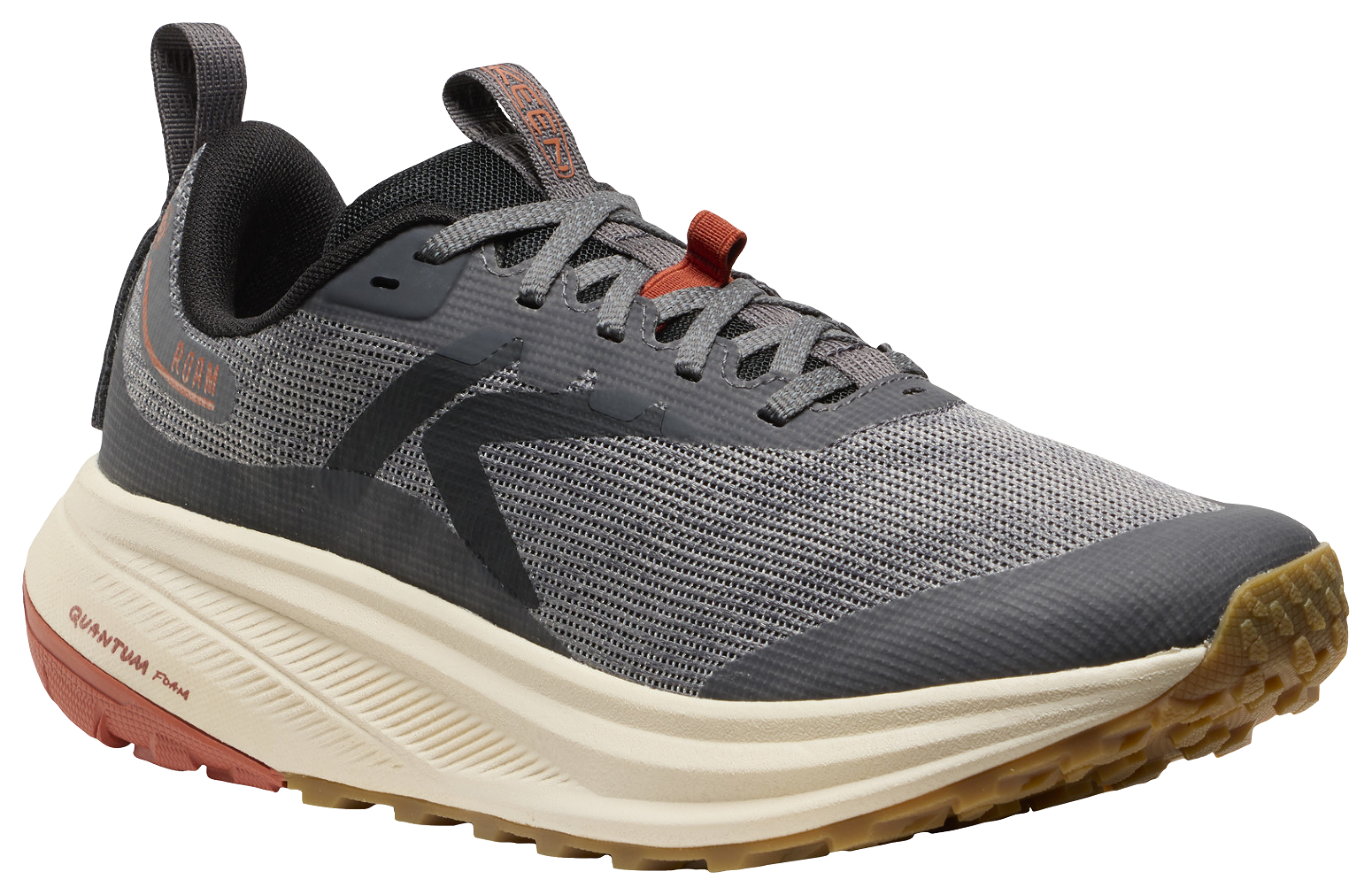 Shoes built to let runners roam where they want to, KEEN® Roam Running Shoes for Men combine advanced materials with proven design to handle roads or trails. This adaptive trail running shoe supports and protects feet with performance ripstop mesh uppers with strategically-placed overlays for added durability. Breathable mesh linings inside the shoes boost the Roam's ventilation for greater comfort and temperature regulation on the run. An Original Fit design, these shoes offer generous space through the forefoot to give toes room to splay for more natural movement and comfort. Balancing comfort, responsiveness, and resilience for any terrain, the advanced high-performance QuantumFoam midsoles deliver durable shock-absorbing performance. These advanced midsoles work with removable insoles made of resilient foam to provide long-lasting cushioning and contoured arch support. Non-marking KEEN.ALL-TERRAIN higher-traction rubber outsoles sport 3mm high-abrasion multi-directional lugs to reliably dig into dirt, mud, and/or rock for reliable traction that lasts. Eco natural odor-resistant treatments. 6mm drop. Avg. Wt. Per Pair: 1 lb. 5.1 oz.