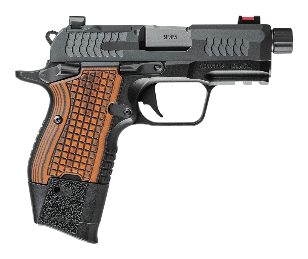 Designed from the ground up for everyday carry, the Kimber® CDS9 Semi-Auto Pistol is packed with features that make it the ultimate personal defense handgun. First and foremost, the CDS9 (Covert Double Stack 9mm) comes with a direct-mount optics cut for Shield® RMSc footprints for easy attachment of a red dot. Plus, it features fully ambidextrous controls and a reversible magazine release. The Tag fiber lock front sight and blackout rear provide ideal targeting in all light conditions. 3.64" match-grade barrel with ½"-28 threads. Aluminum frame with KimPro® finish. Stainless steel slide with scalloped serrations. Stacked recoil spring for increased life up to 10,000 rounds. Frag pattern G10 grips. Includes 2 magazines.