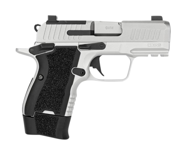 Designed from the ground up for everyday carry, the Kimber® CDS9 Stainless Optics-Ready Semi-Auto Pistol is packed with features that make it the ultimate personal defense handgun. First and foremost, the CDS9 (Covert Double Stack 9mm) comes with a direct-mount optics cut for Shield® RMSc footprints for easy attachment of a red dot. Plus, it features fully ambidextrous controls and a reversible magazine release. 3.18" match-grade stainless steel barrel. Aluminum frame with KimPro® Silver finish. Stainless steel slide with Matte SST finish. Stacked recoil spring for increased life up to 10,000 rounds. Nylon grip panels. Includes 2 magazines.