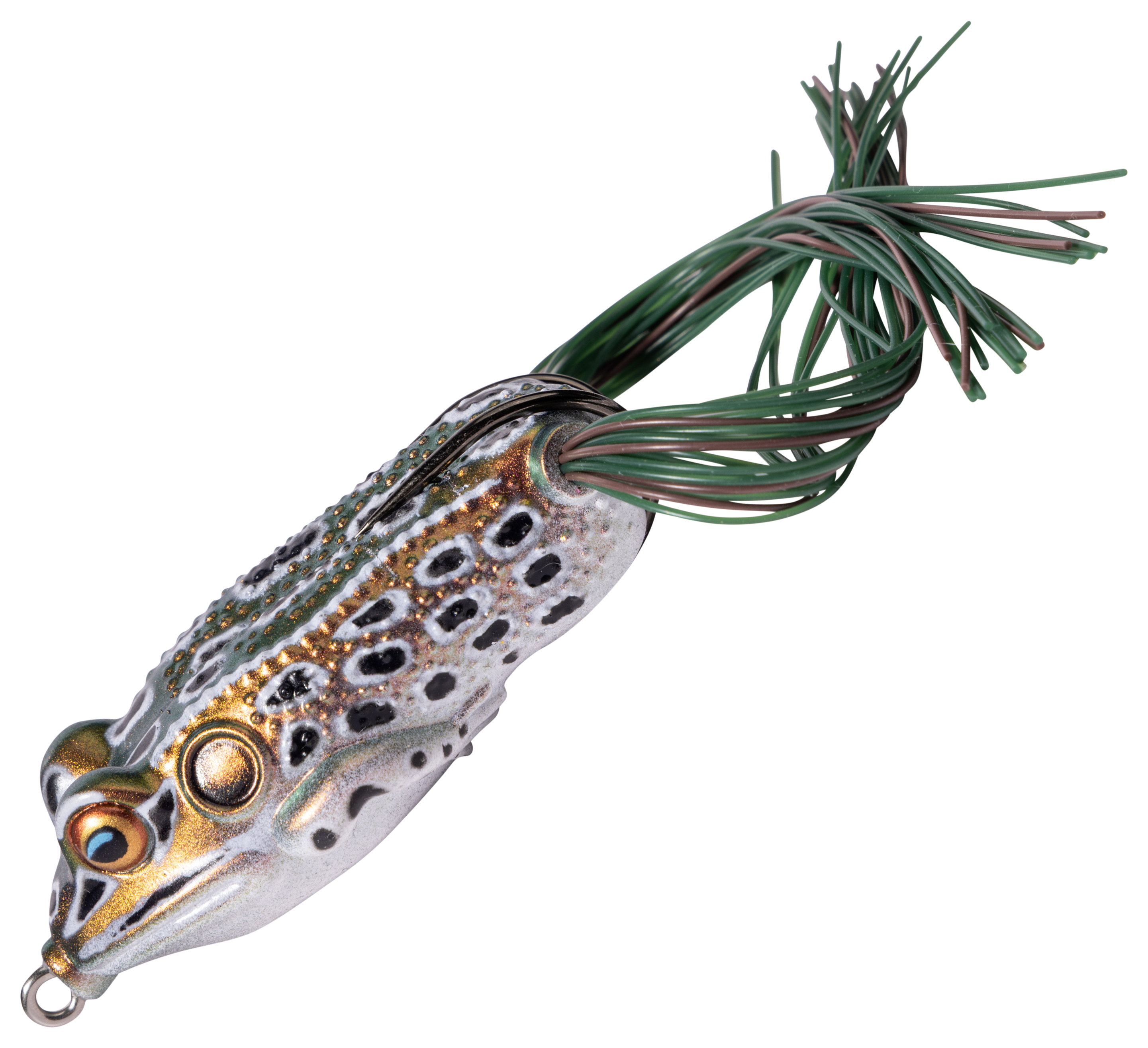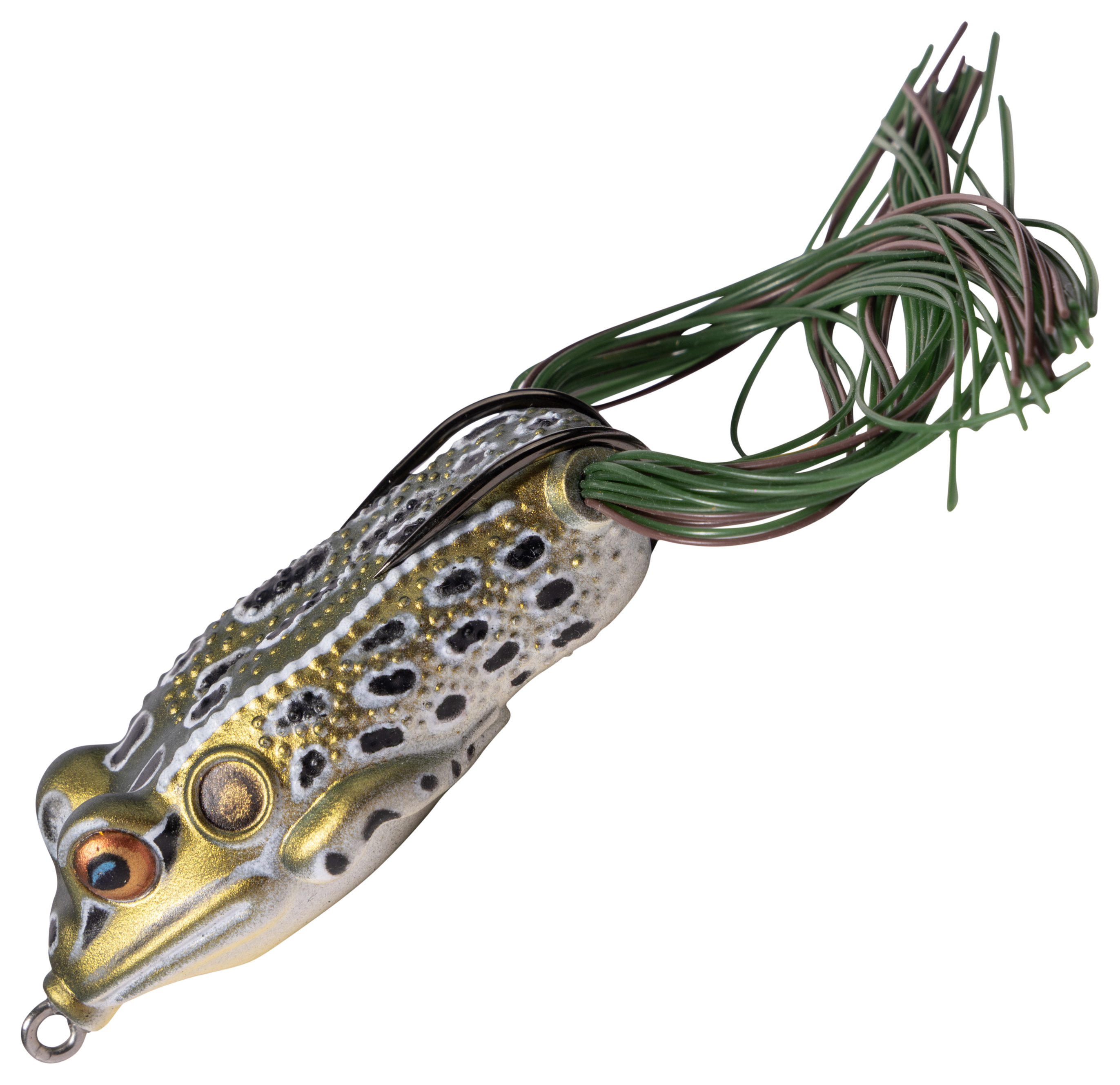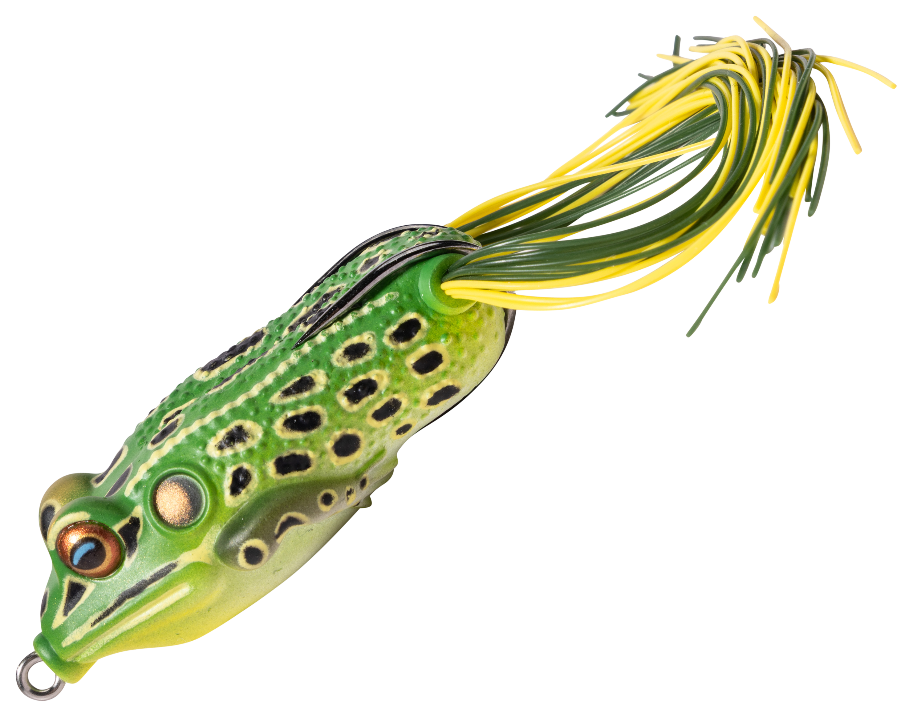 Fuel your topwater adrenaline with the LIVETARGET® Hollow-Body Frog, an ultra-realistic bait targeting explosive strikes from giant fish. Crafted with anatomically accurate detail and lifelike colors, this frog glides across mats, pads, and open water with a natural, effortless action that attracts predators lurking below. A soft, collapsible body exposes more of the custom AlphaPoint™ double hook, designed by Mustad® for superior strength and penetration, giving you a serious edge during those split-second surface attacks. Every detail, from painted eyes to a floating design, works together to mimic the real thing while stacking the odds in your favor. Pre-rigged and ready to tie on straight from the package, the LIVETARGET Hollow Body frog raises the standard for topwater performance and consistency, offering the strike-to-hookup ratio serious bass hunters demand.