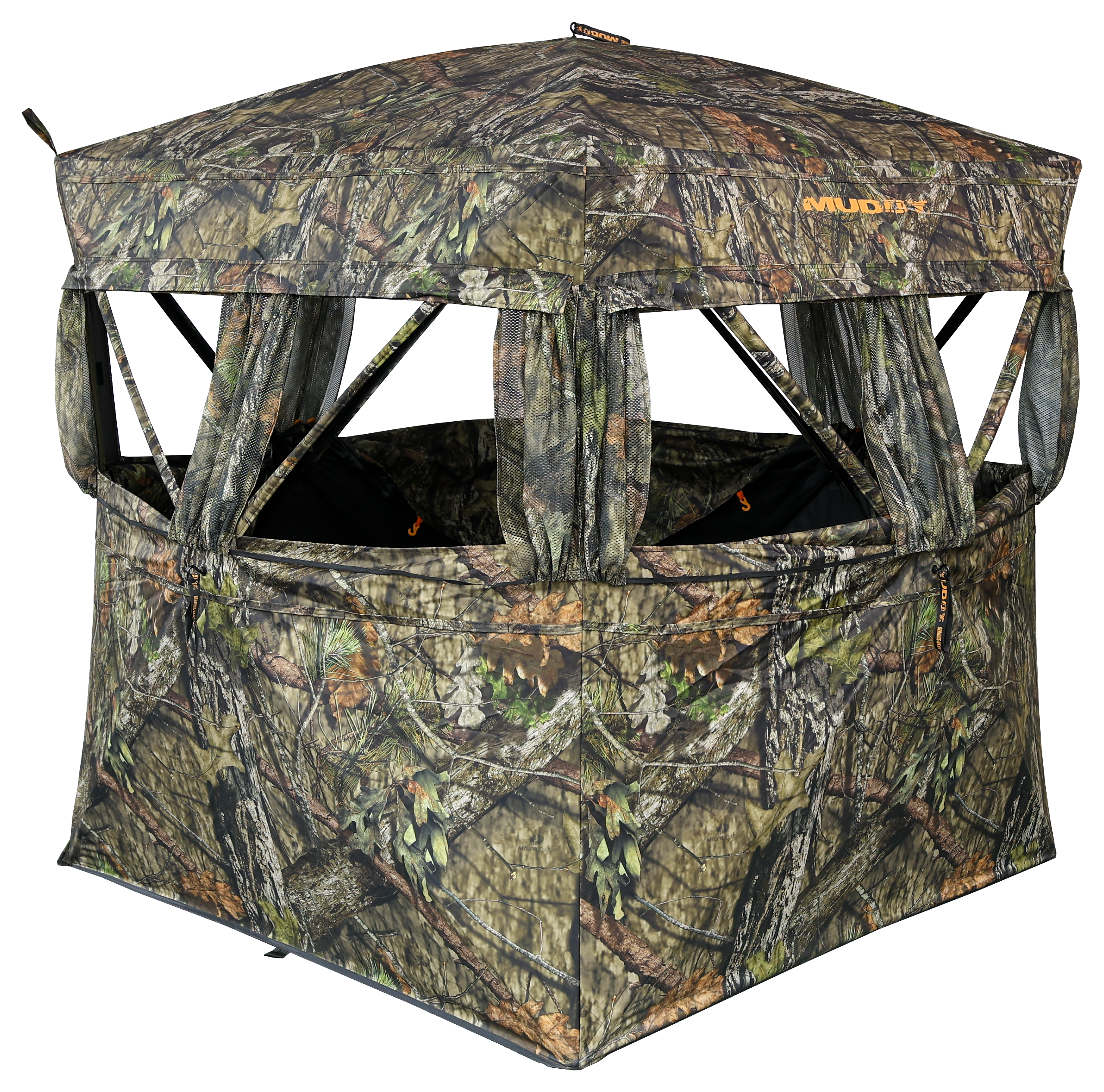 Offering quality concealment that sets up in seconds, the Muddy® VS360 Ground Blind gives hunters 360° of viewing and shooting. An easy to set up hub-style blind for up to 3 hunters, the VS360 combines a durable, water-resistant fabric shell with a black interior to optimize the concealment of hunters inside. Roomy sliding shoot-through mesh shooting windows help the blind blend into its surroundings while giving hunters a 360° view and ample shooting lanes, helping hunters eliminate blind spots on the hunt. Silent, 1-hand release hooks offer a quiet release for unlimited window adjustment. Lower camo brush loops make it easier to add local foliage to help conceal the blind even more. Sturdy, hub-style frame for fast and easy setup. Stable design includes a bottom wind flap and comes with 9 steel stakes and 4 tie-down ropes to securely anchor the blind. Easy-access door with full-length zipper. 2 interior gear pockets. Comes with oversized carry bag. 77"L x 77"W x 70"H (peak). Footprint: 60"L x 60"W. 17.6 lbs.