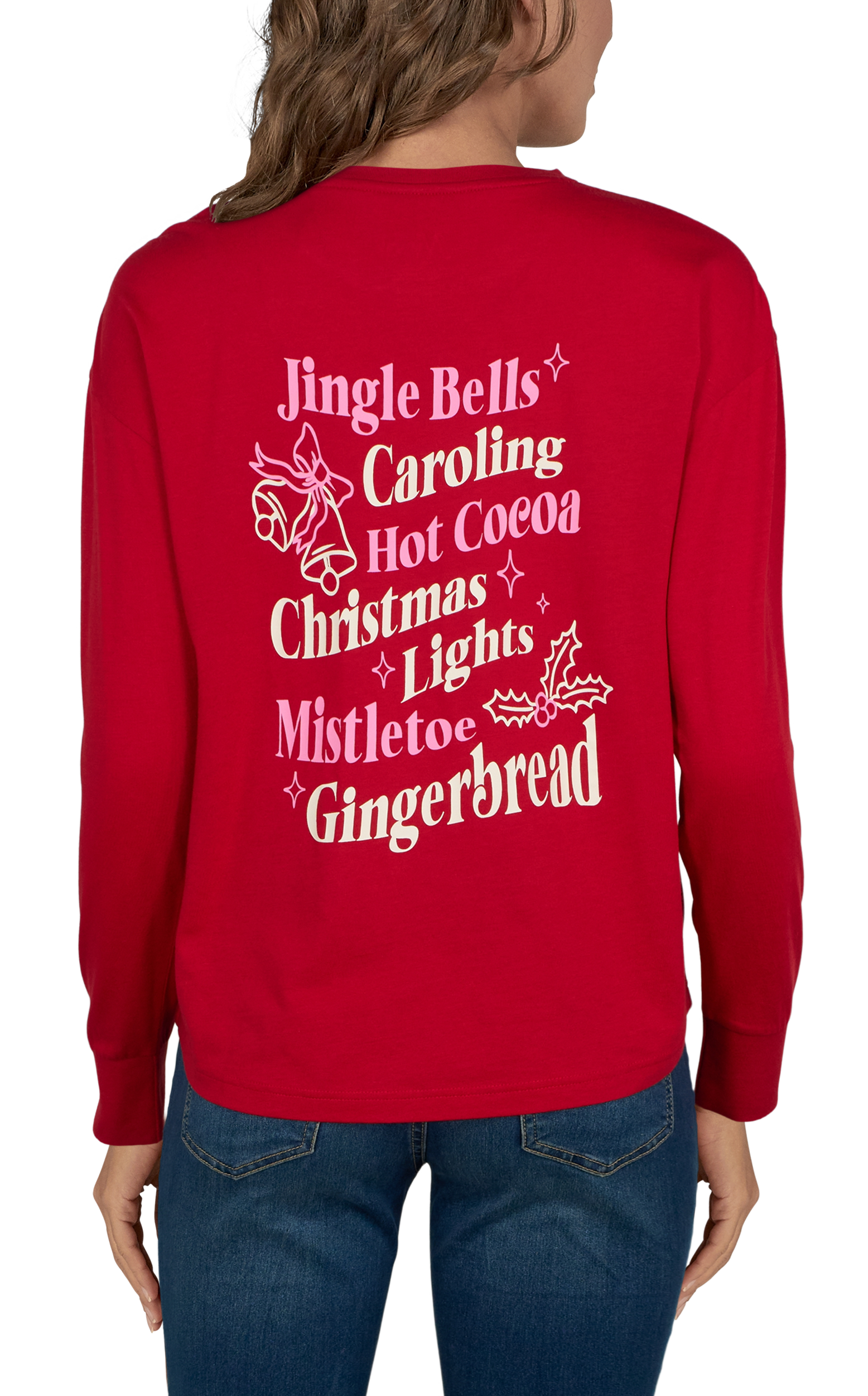 Our Natural Reflections® Favorite Things Long-Sleeve T-Shirt highlights some of the joys that Christmastime brings! On the back, you'll find a graphic of them that's nearly as long as your wish list! The soft, warm cotton blend is sure to deliver the cozy comfort you want to make the most of the festive season. This Christmas shirt comes finished with a ribbed crew neck that maintains its shape. 60% cotton/40% modal. Body Length (Based on Size M): 26". Machine wash. Imported.