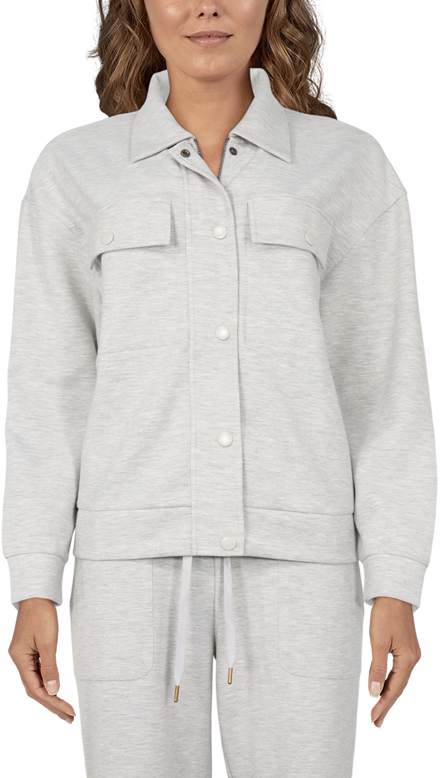 Whether you're heading out for a crisp morning in the outdoors or huddling around the campfire with friends, the Natural Reflections® Soft Haven Scuba Heathered Jacket delivers cozy comfort with a laid-back look. Its soft, stretchy 56% viscose/36% polyester/8% spandex blend moves with you. Perfect for layering, this women's jacket from Natural Reflections is a go-to piece for transitional weather and relaxed weekends. Machine wash in cold, tumble dry on low. Imported.