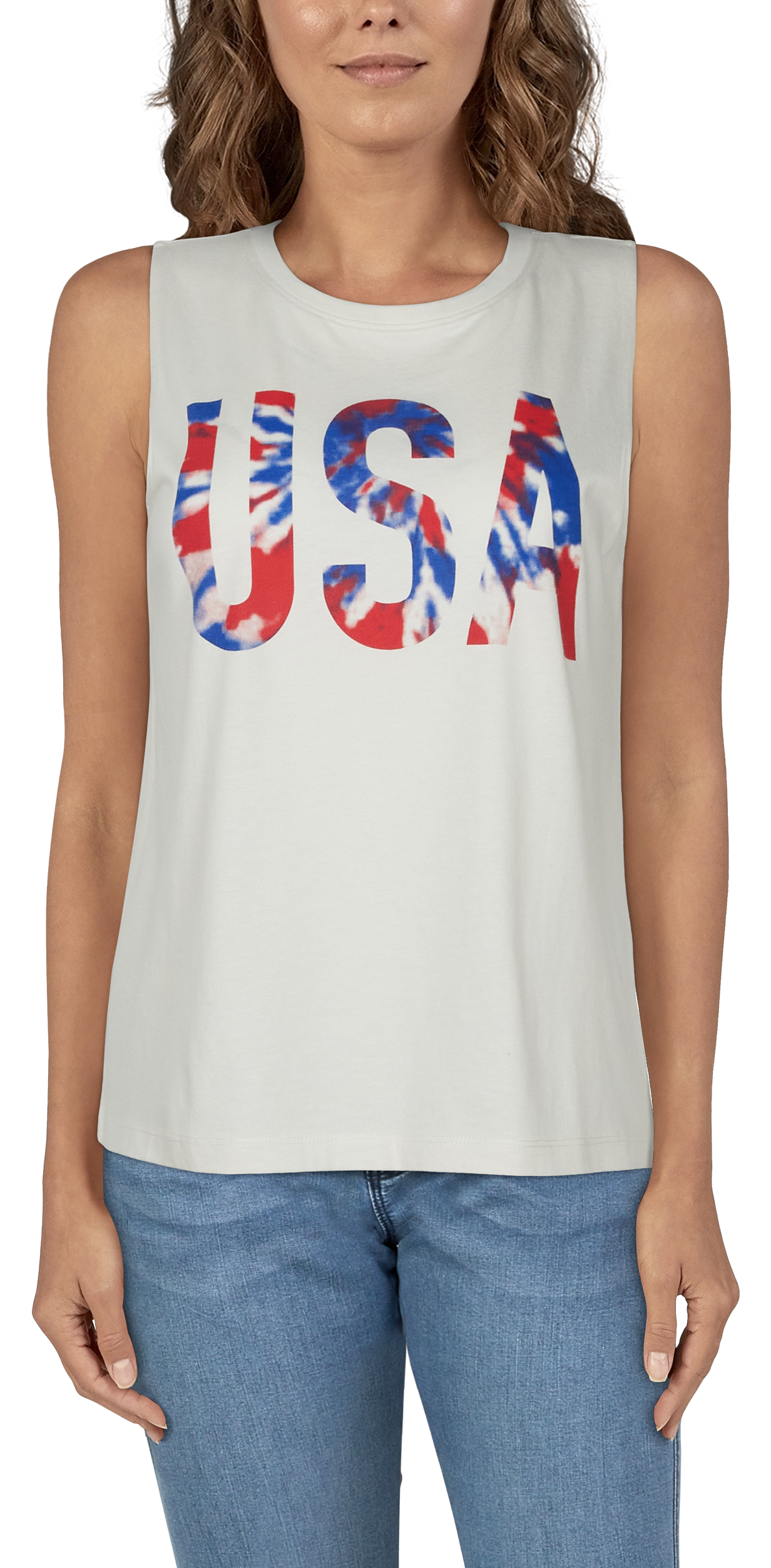 Our Natural Reflections® USA Tank Top delivers patriotic vibes and easy-wearing comfort for warm weather. Made from 55% cotton/45% modal, this women's top is supremely soft and comfy. The tie-dyed USA print across the chest shows your American pride. Body Length (Based on Size M): 24.25". Machine wash. Imported.