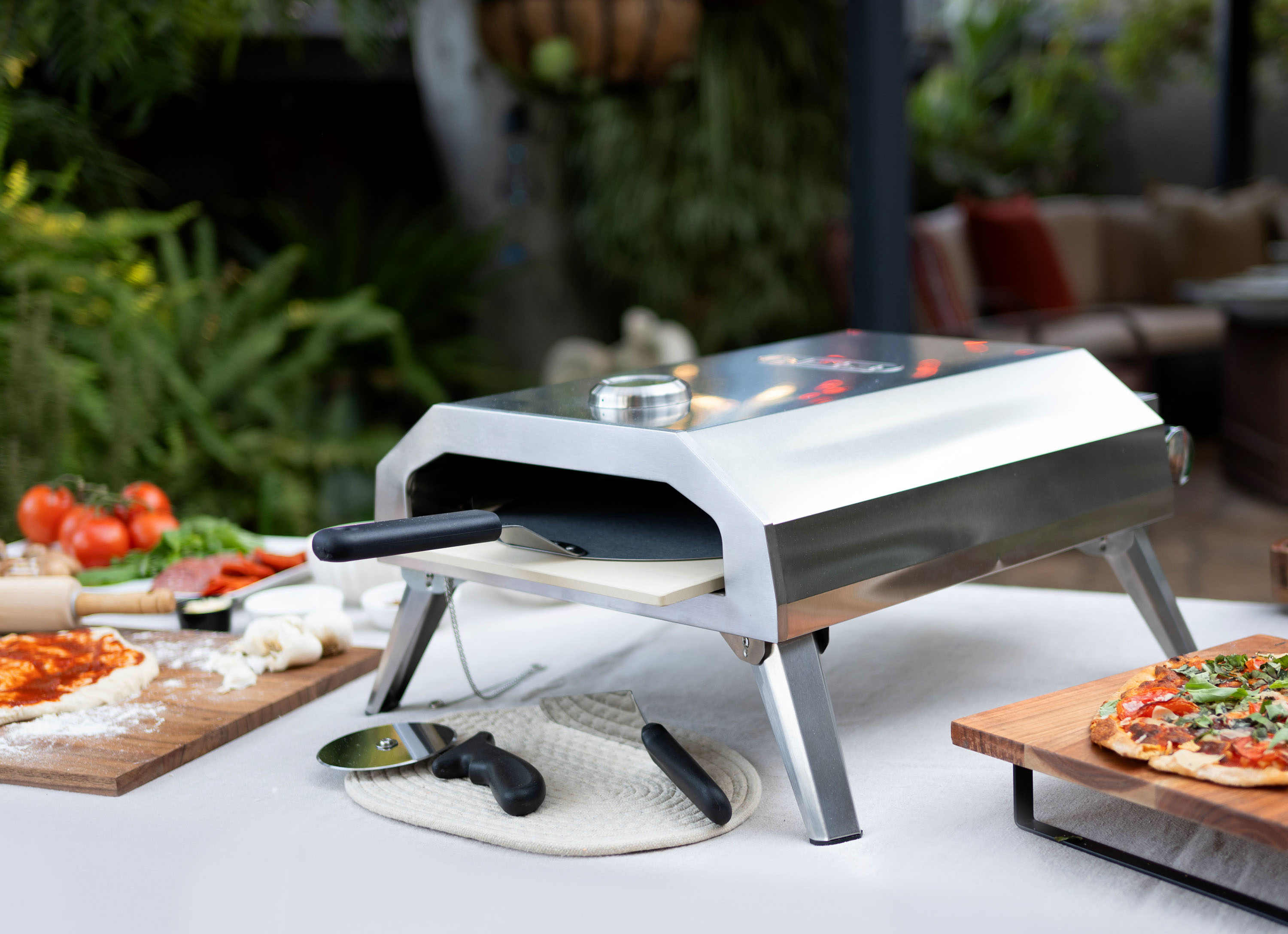 Thanks to the NXR Tabletop Gas Pizza Oven, you can enjoy delicious, oven-baked pizza in your backyard, camping, or wherever your adventures take you. This compact, lightweight, and easily portable oven heats up to 1,000°F in 15 minutes, and at this temperature, most pizzas bake in approximately 90 seconds. The exterior of this camping oven from NPX features strong stainless steel construction. Inside, a stainless steel firebox, ceramic 169-sq.-in. pizza stone, and a 12,000 BTU stainless steel burner create even-heating perfection. Foldable legs enhance packability. Easy to use ABS knob and turn ignition. Regulator fits 1-lb. propane tank (not included).