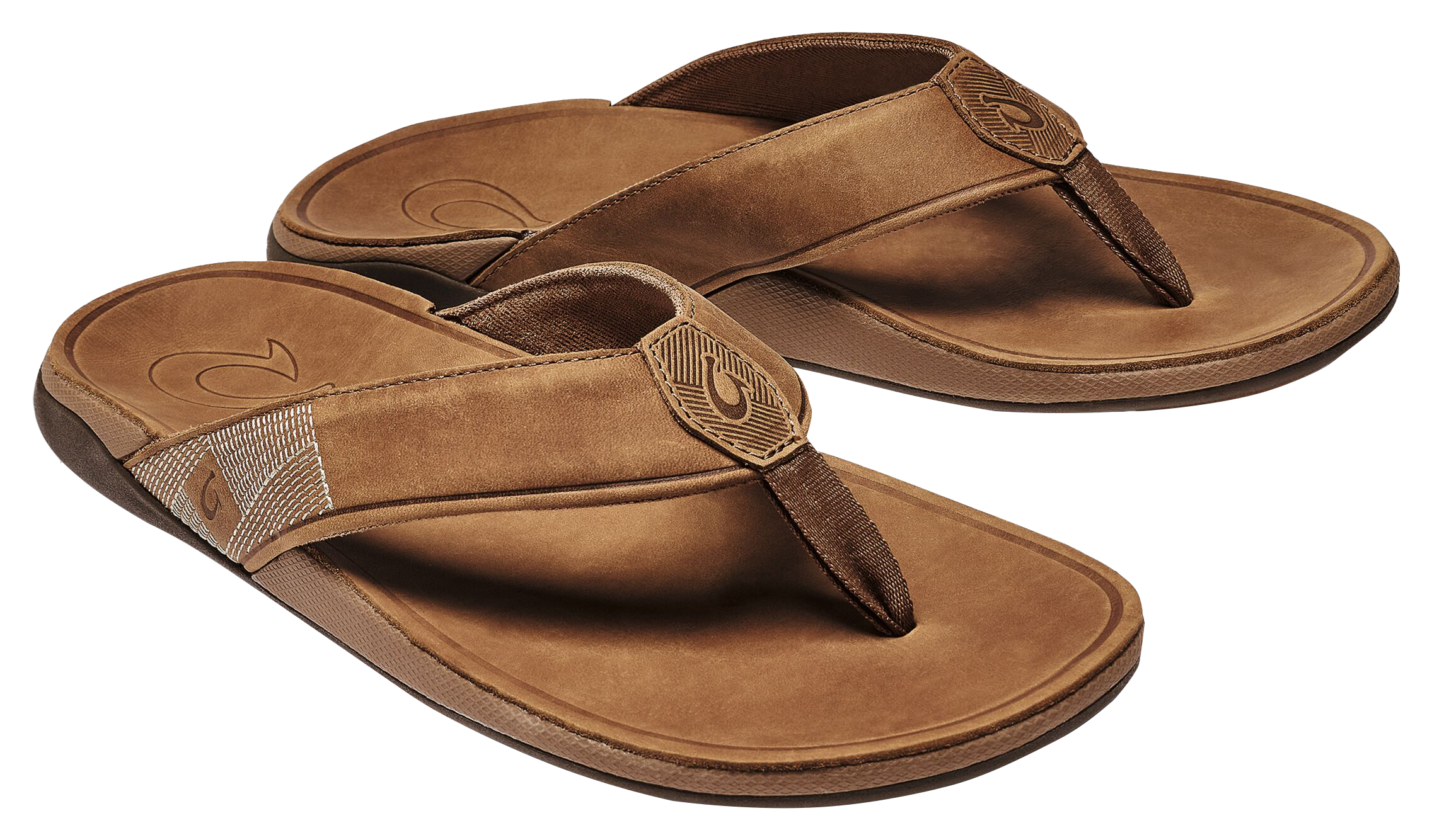 Featuring waterproof full-grain leather uppers, the OluKai® Tuahine Toe Post Sandals for Men deliver a smooth, soft feel your feet will love. Soft mesh linings and nylon toe posts ensure these men's flip flops provide chafe-free comfort for all your sunny adventures. Anatomically correct compression-molded footbeds with full-grain leather covers give your feet cushioned comfort. The OluKai Tuahine Toe Post Sandals for Men are finished with non-marking Wet-Grip rubber outsoles for confident traction on wet or dry surfaces. Imported. Manufacturer style #: 10465.