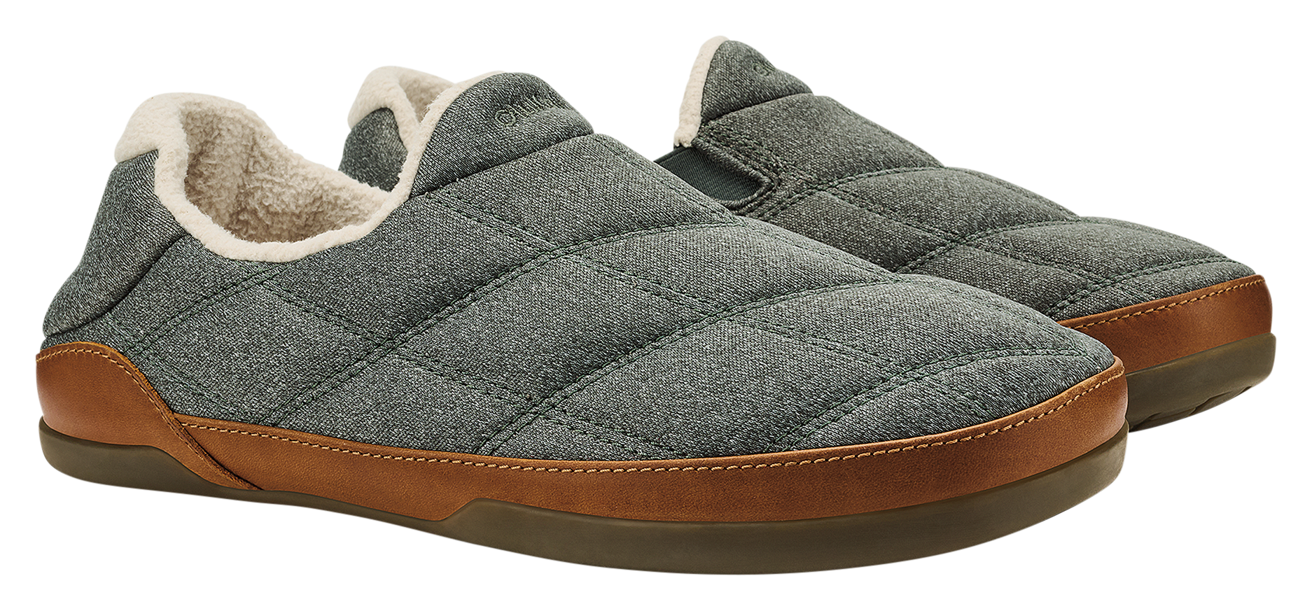 Don't let all the coziness fool you. OluKai® Pukui Slippers for Men step effortlessly into daily life. Designed with an activewear mindset, these men's slippers blend tech-inspired style with premium full-grain leather and fleece linings. The heather jersey-knit uppers offer light insulation and an easy, comfortable fit from the first wear. Removable, washable fleece footbeds cushion each step while supporting long days on your feet. Underneath, wet-grip rubber outsoles provide surefooted traction, even on slick sidewalks or damp driveways. Get up and get your day going comfortably with Pukui men's slippers from OluKai. Imported. Manufacturer style #: 10564.