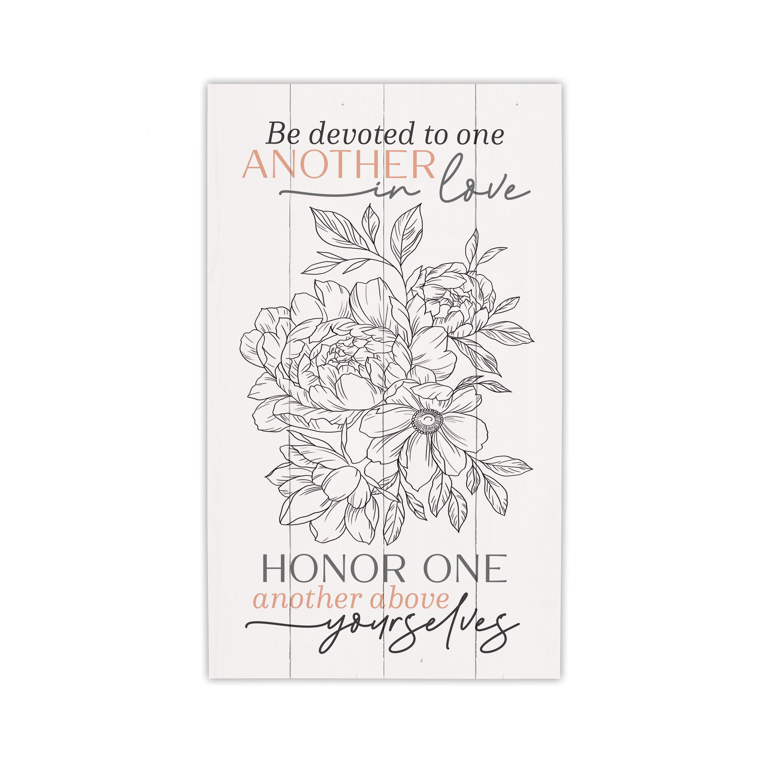 • Features the phrase "Be devoted to one another in love, honor one another above yourselves"