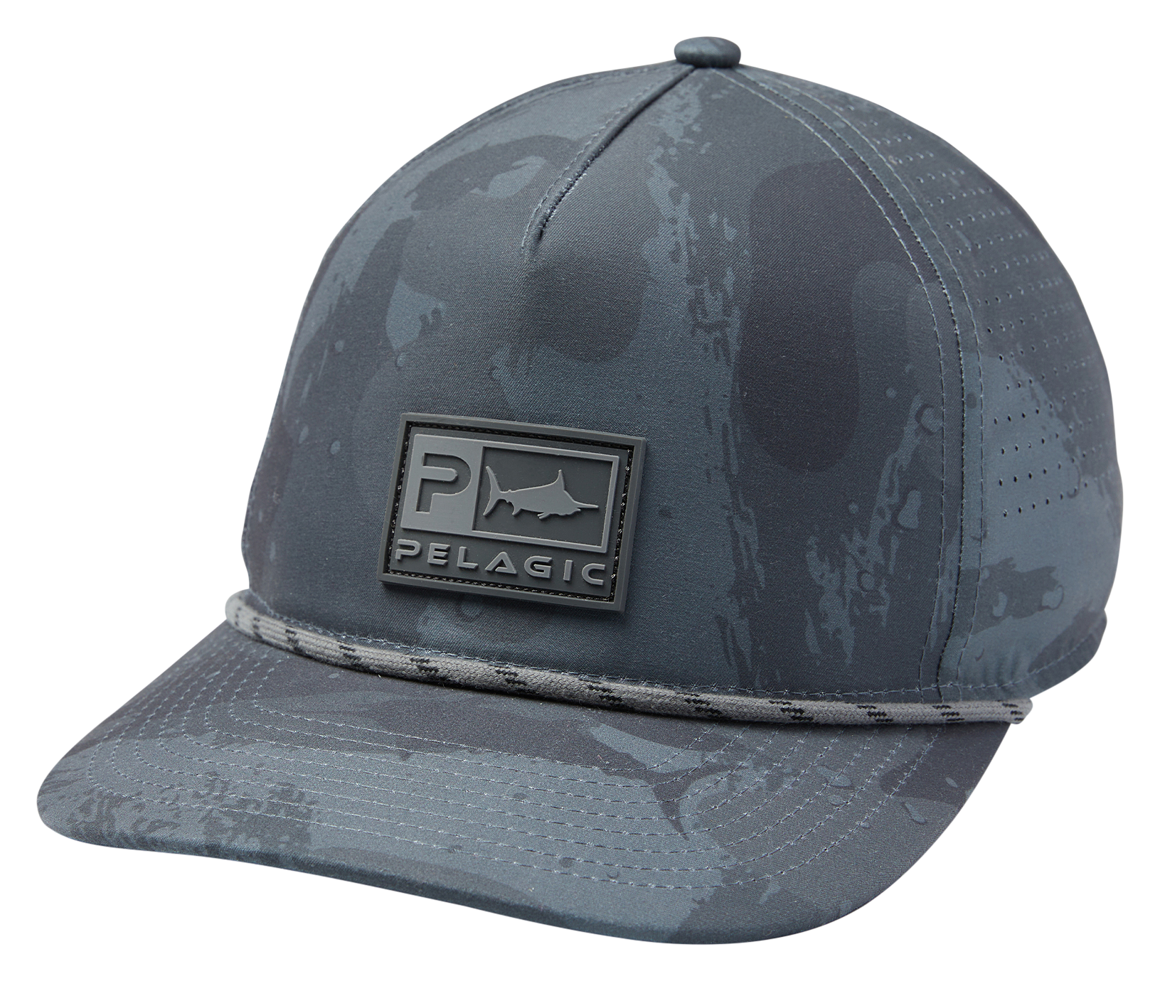 If you're looking for a hot-weather cap with fantastic fishing camo, try on the Pelagic® Upswell Brush Camo Deluxe Mid-Crown Snapback Trucker Cap and enjoy casting all day in the blazing sun. This quick-drying cap is made of an ultra-light 100% polyester fabric, and it has laser-cut venting to keep you cool. A moisture-wicking sweatband draws sweat way from your brow. Built-in water- and stain repellency sheds water in the rain, and it sheds blood and grime when you wash it. A front patch displays a fishing design and the Pelagic logo, and the sun-blocking bill of this fishing cap is topped off with a decorative cord. Unstructured, mid-crown, relaxed-fit design. Imported.