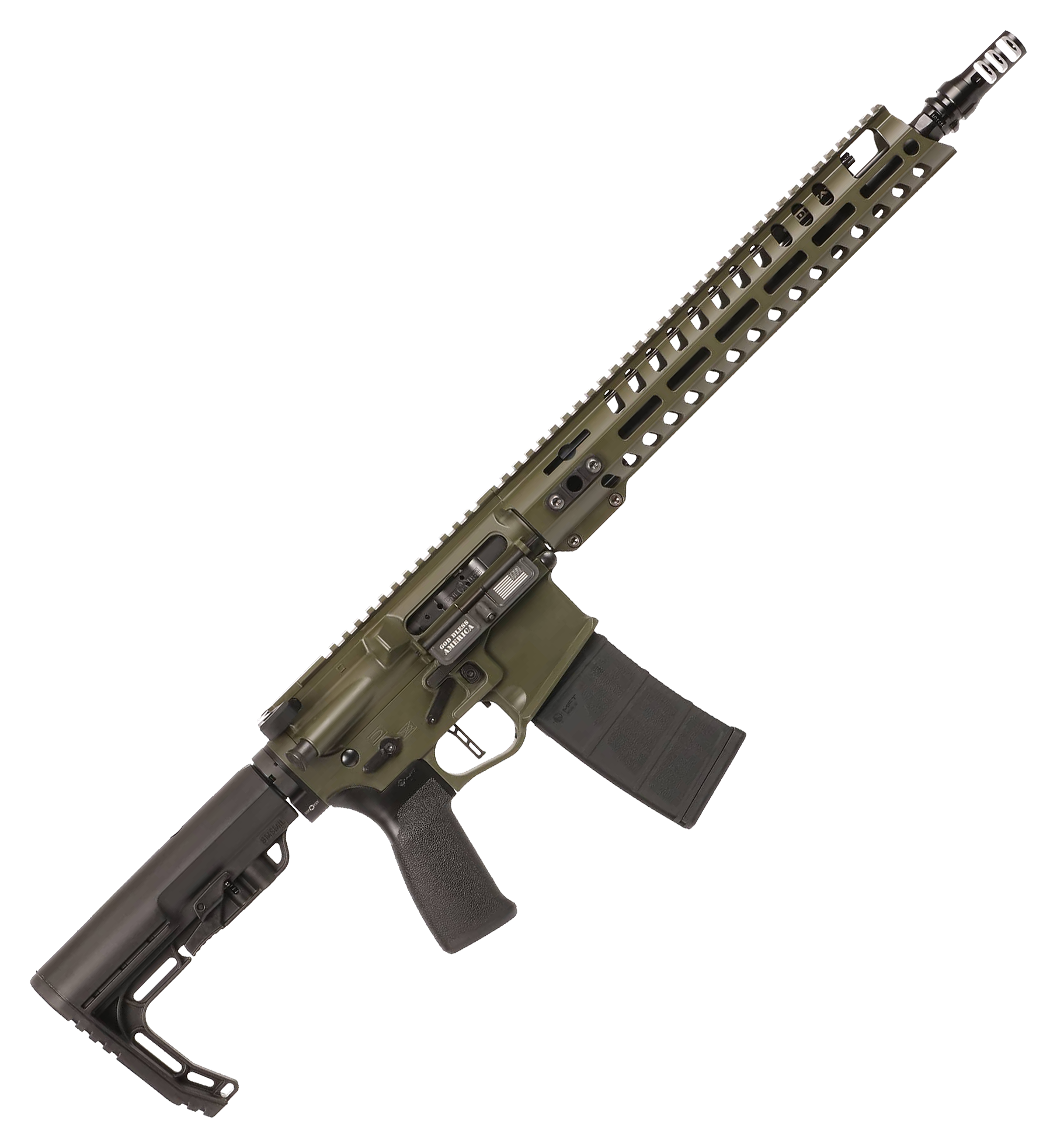 Built to exceed expectations and be everything a direct-impingement AR-15 can be, the POF USA® Renegade+ Semi-Auto Rifle with Dead Air® KeyMo Muzzle Brake delivers enhanced performance front to back. The Renegade+ eliminates all the weak points of the traditional direct-impingement system. The improved roller-cam pin ensures a smooth and reliable relationship with the upper receiver, while the 9-position Dictator adjustable gas block gives you ultimate control for different loads or suppressor use. The rifle is built on POF's Gen 4 billet lower, featuring an ambidextrous bolt release, ambidextrous bolt hold-open, ambidextrous safety, and ambidextrous mag release. It comes equipped with a 13.75" barrel with pinned and welded Dead Air KeyMo Muzzle Brake, which brings it up to legal length and provides an easy mounting solution for a suppressor. The flat-faced, single-stage trigger breaks clean at 3.5 lbs. and features anti-walk pins. Additional features include a 13" M-LOK® handguard, MFT® Minimalist stock, and MFT Engage V2 grip. Includes 1 magazine.