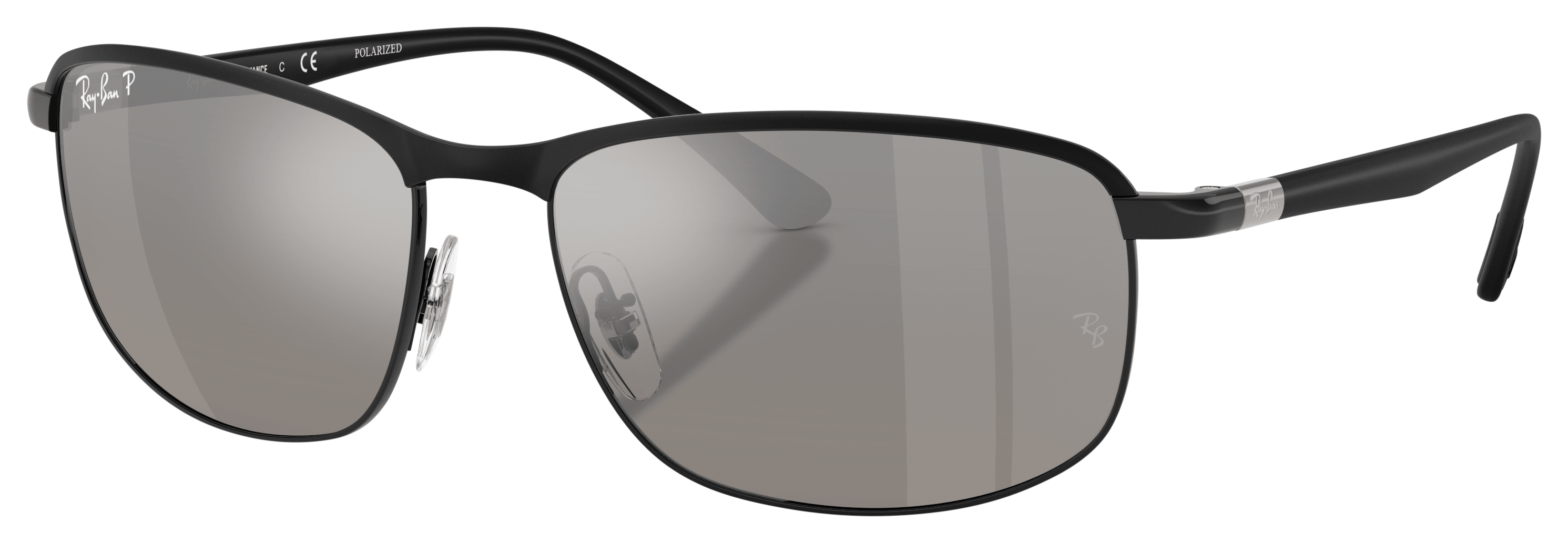Ray-Ban® RB3671CH sunglasses in black on silver are a modern take on the pillow shape. Crafted from metal, these unisex shades feature gradient gold polarized lenses for extra protection and Chromance treatment for a shiny finish that will turn heads wherever you go. With their unique pillow shape and sleek color combination, these sunglasses offer both comfort and style. Manufacturer style #: RB3671CH .
