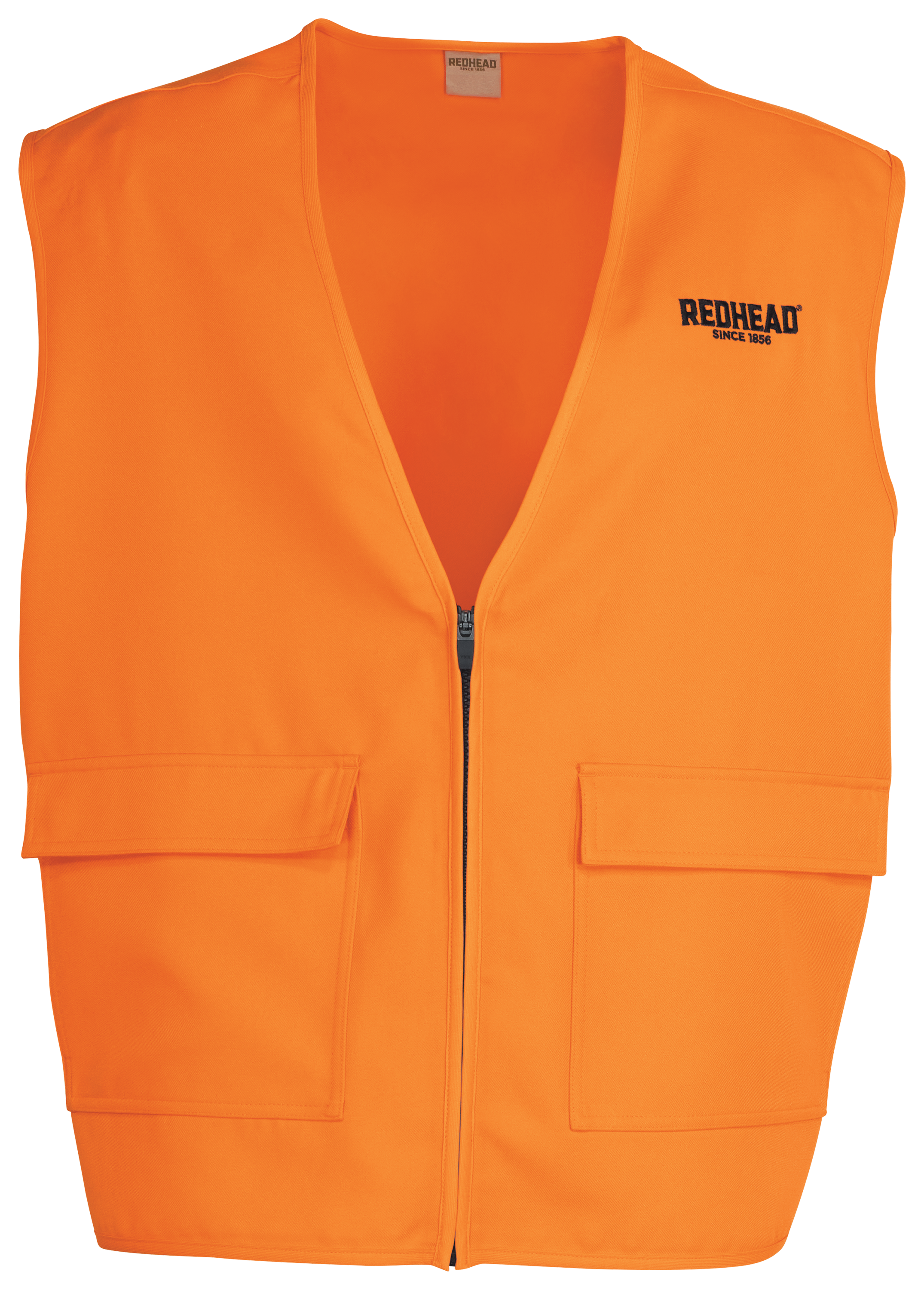 Simple but vital, our RedHead® Safety Vest plays a crucial role in the field, on the range, or anywhere sporting excursions take you. This blaze vest sports a zip front to stay in place and dual snap-flap pockets to hold empties, a phone, ID, or other vital gear. A durable water-repellent (DWR) finish beads away light surface moisture. An embroidered RedHead wordmark on the left chest gives a nod to the more than 150-year-old outfitter. 100% polyester. Machine wash. Imported.