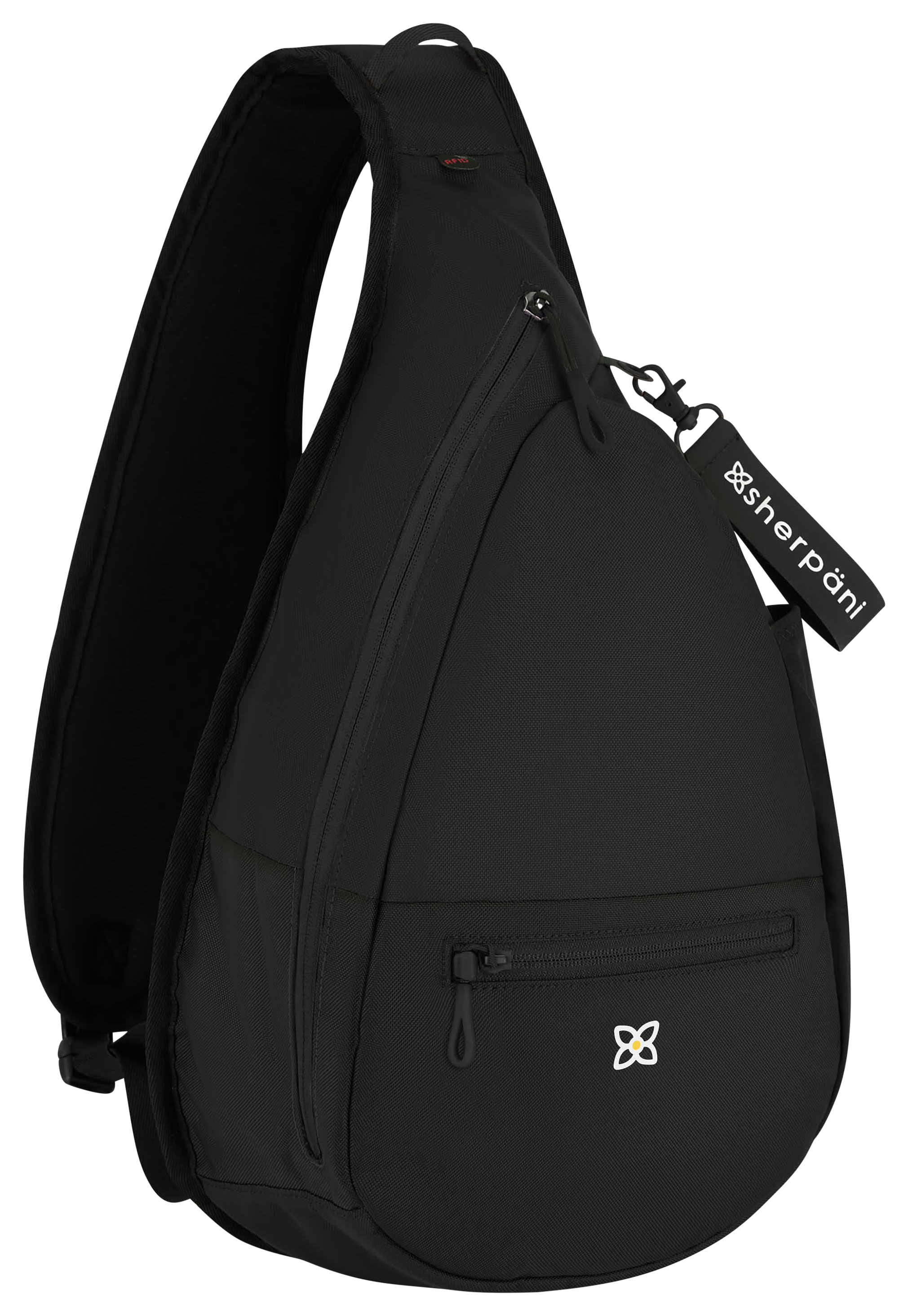 The Sherpani® Esprit Sling Backpack makes it easy to throw the day's essentials over your shoulder and head out! It's made from 100% recycled polyester, which helped divert 17 plastic water bottles from landfills, so you can feel good about your choice! Plus, the material resists water to protect contents from the elements and is RFID protected to safeguard sensitive info. Inside the zippered main compartment, you'll find plenty of storage space for a 10" tablet and more as well as a mesh pocket. There's even more storage room on the exterior, including a zippered pocket, a fleece-lined pocket, and a zippered pocket on the sling strap. Strap adjusts up to 22.5". 18"H x 11"W x 5"D. Capacity: 10L. Weight: 11 oz. Imported.