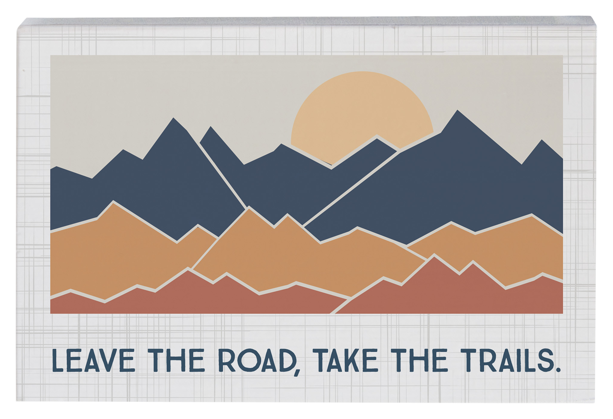Stay connected to the trails at home with the Sincere Surroundings Leave The Road Wooden Display Sign. The minimalistic graphic showcases the sun shining over a colorful range of mountains, while the sign's pine-wood construction ensures lasting enjoyment for seasons to come. This home décor piece can be hung on a wall or displayed on a tabletop. 5.25"L x 3.5"H x 1.25"W. Weight: 6.5 oz.