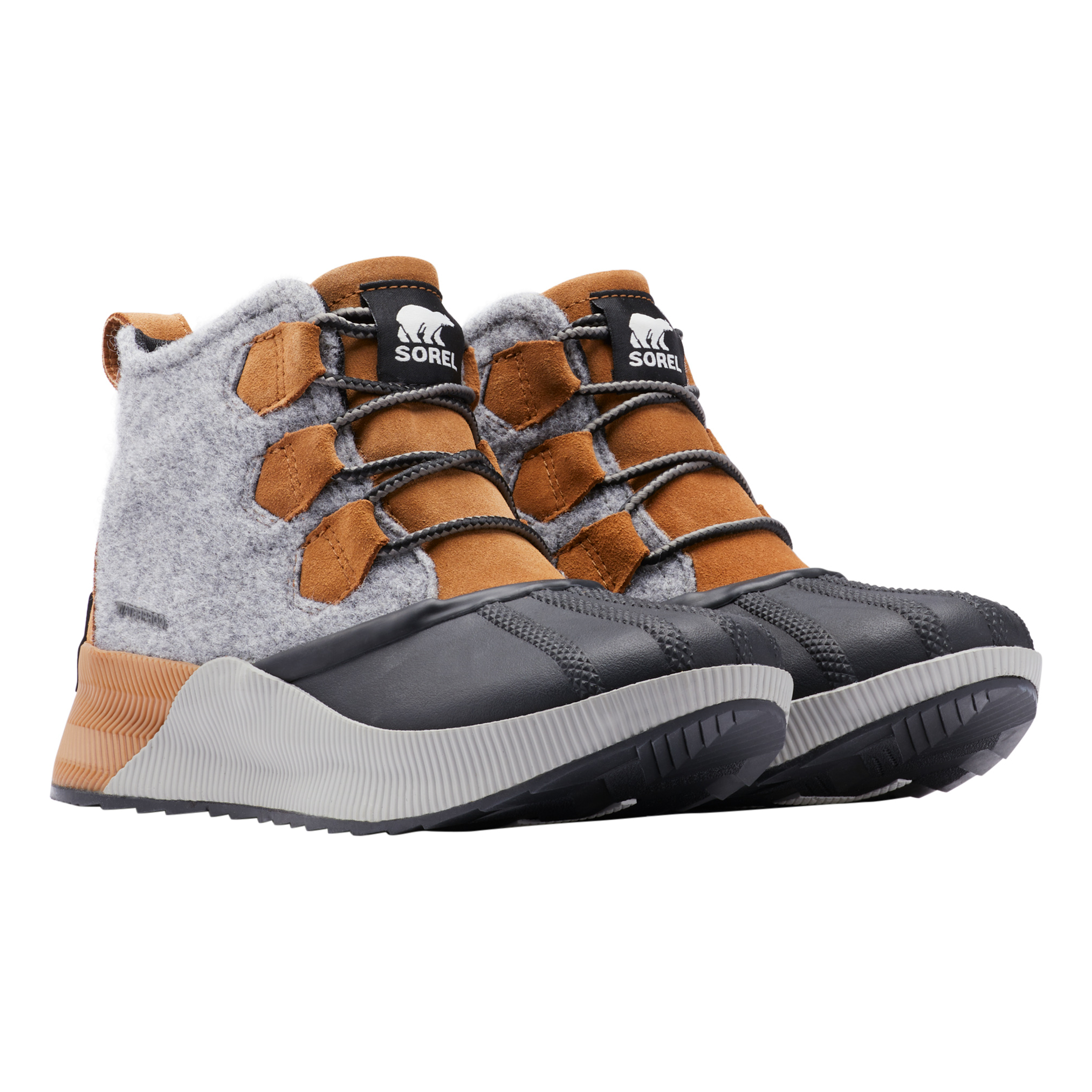 Offering a great look and with trusty waterproof Sorel® protection, the Out N About™ III Classic Felt Waterproof Boots for women deliver top-notch protection with comfort. Combining a waterproof suede leather and felt upper with a vulcanized rubber shell over the front half of the foot, these easy-wearing boots provide a durable shield from the elements. Waterproof bootie construction keeps feet dry in any weather. Inside, textile linings let feet breathe, while the removable, molded EVA footbeds with soft textile covers soften every step and landing. Compression-resistant polyurethane midsoles with vulcanized rubber foxing tape absorb shock over rougher surfaces. Durable, molded rubber outsoles sport an enhanced traction design with braking sections and sipe-like sections for sure footing on wet surfaces. 3/4" heel. Imported. Manufacturer style #: 1959291-224.